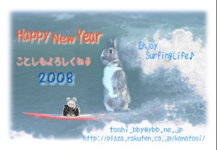 明けましておめでとうございます1日2日と仕事だったので、 今日明日と連休でやっと正月気分 とはいえ新しい仕事の疲れがたまってて、 今日は1日寝て曜日でした__。 最近のカナたんはますます元気で、 毎日意外なことしでかしてくれます なかでも困ったのが、 朝早くから寝ている私の頭を踏んづけて走り回ること(-"-;) 飛び越えられる筈なのに、 一度頭の上に乗って後足でキックしていきます。 わたしを起こすための確信犯のようです。 そんなカナたんの話題とほぼ冬篭り中のサーフィンの話題・・ 今年もそんな日記スタイルで行きますが、 お付き合いの程、よろしくお願いします☆☆☆☆☆☆☆☆☆☆☆☆☆☆☆☆☆☆☆☆☆☆☆☆☆☆☆☆☆☆☆☆☆☆☆☆☆☆☆カナたん動画集こちらShop「しろつめくさ」も見てくださいね☆ふくみみうさぎ *ウサギの里親様大量募集*