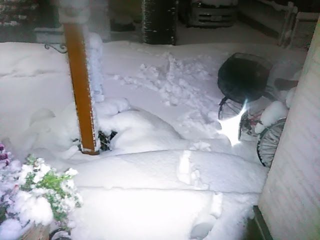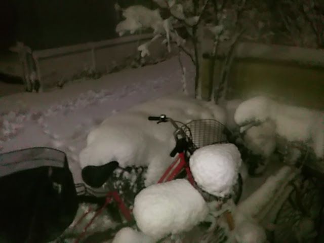 自転車が雪に埋まって 押すのに力が要るわ~~(>_<)