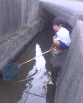 にーちゃんにはまだちょっと難しい・・・でも1匹すくいました。