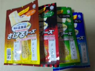 「さけるチーズ4種類セット」当選しました。プレーン、スモーク、とうがらし、ガーリック。プレーンと、スモークはよく食べているので味はわかっていますが、とうがらしと、ガーリックは初めて。早速夕飯時に食べてみました。とうがらしは、パッケージにお子様や辛いものが苦手な方は…と書かれていたので、ルー坊が食べれるか心配でしたが、わりと大丈夫でした。一口目はあまり辛さを感じず少しピリッとするくらい。食べ進めると辛く感じますがとてもおいしかったです。ガーリック味は、ガーリックのにおいがして食欲をそそります。口に含むとそんなに強くないガーリックの風味と、チーズの風味が広がって美味しかったです。*ガーリック風味はエリア限定商品のようで、北海道、東北、関東での販売のようです。(メーカーホームページより)雪印北海道の美味しい乳製品[雪印北海道100] さけるチーズ・プレーン雪印北海道の美味しい乳製品[雪印北海道100] さけるチーズ・スモーク