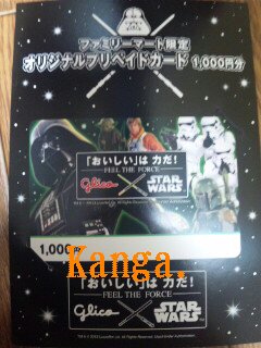 ファミリーマート限定『グリコ×STAR WARS』の、プリペイドカード1000円分に当選!!STAR WARS好きなのでうれしいけど、ルークとヨーダが小さすぎ~もったいなくて使えません。
