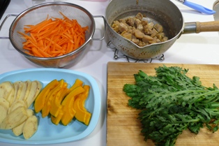 油ものを避けてはいますがタマに食べたくなる天ぷらうちの天ぷらは野菜です♪人参・さつま・カボチャ・春菊です♪本当は牛蒡もほしかった~豆男は下ごしらえも豆です?だと思いませんか♪栗も最終かと思い茹でました♪はぁ~栗だけで1時間かかりました。。子どもたちに評判いいです♪パパの野菜の天ぷら♪揚げても揚げてもすぐになくなります。天ぷらの時はパパは一緒に食べられませ~ん。