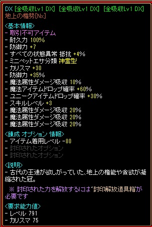 おはこんばんにちわ。きんけつなかんきつです。ところでこれどうしよう770でレベリング終了予定がこれT全吸収にしてNX化したら装備レベル871やで・・・?どないすんねん^-^というかT吸収にするためにあんまり鏡割きたくないむしろランサ育ててメディテーションポールつけたい はいあー 狩りシタクナイ