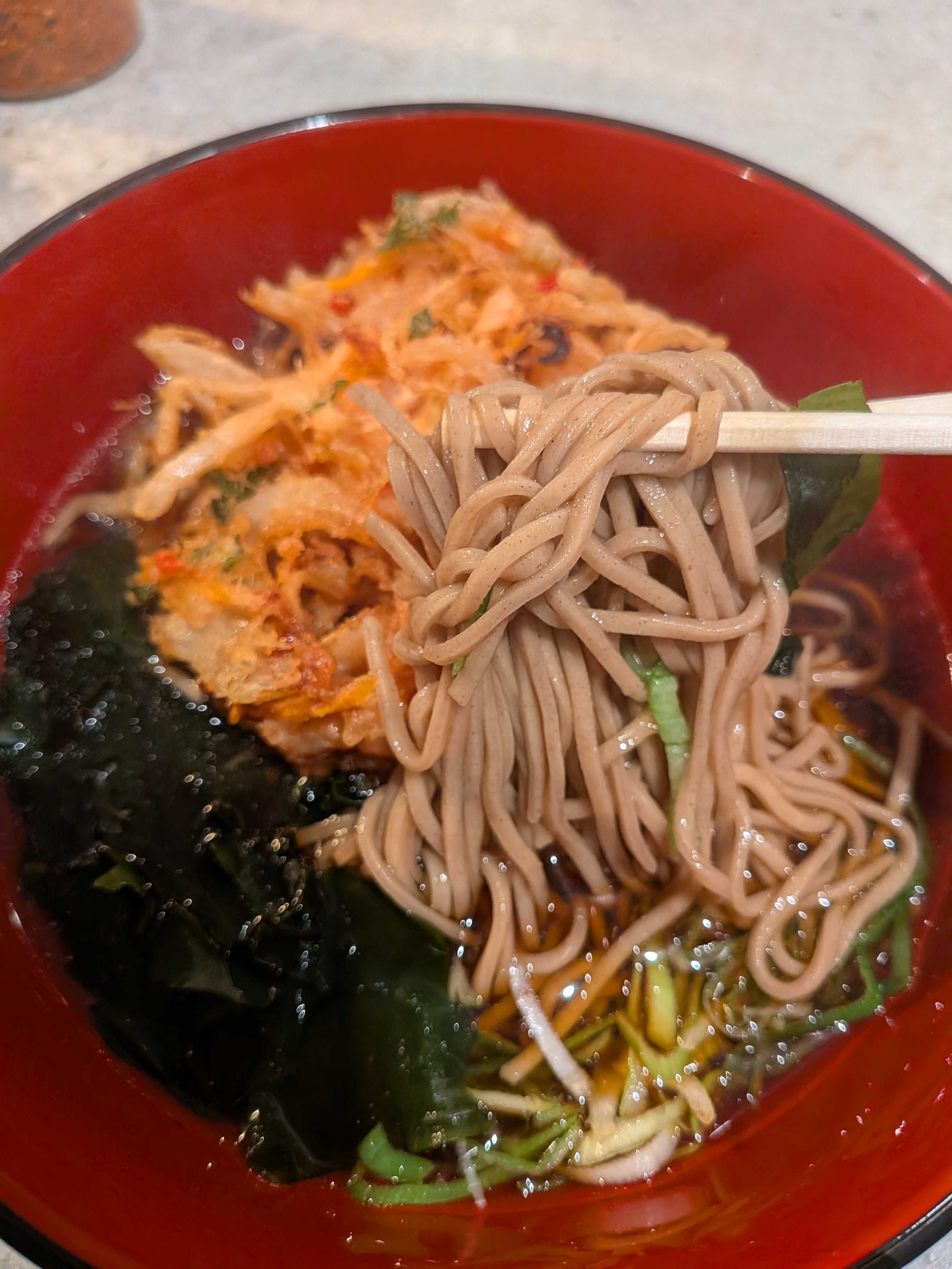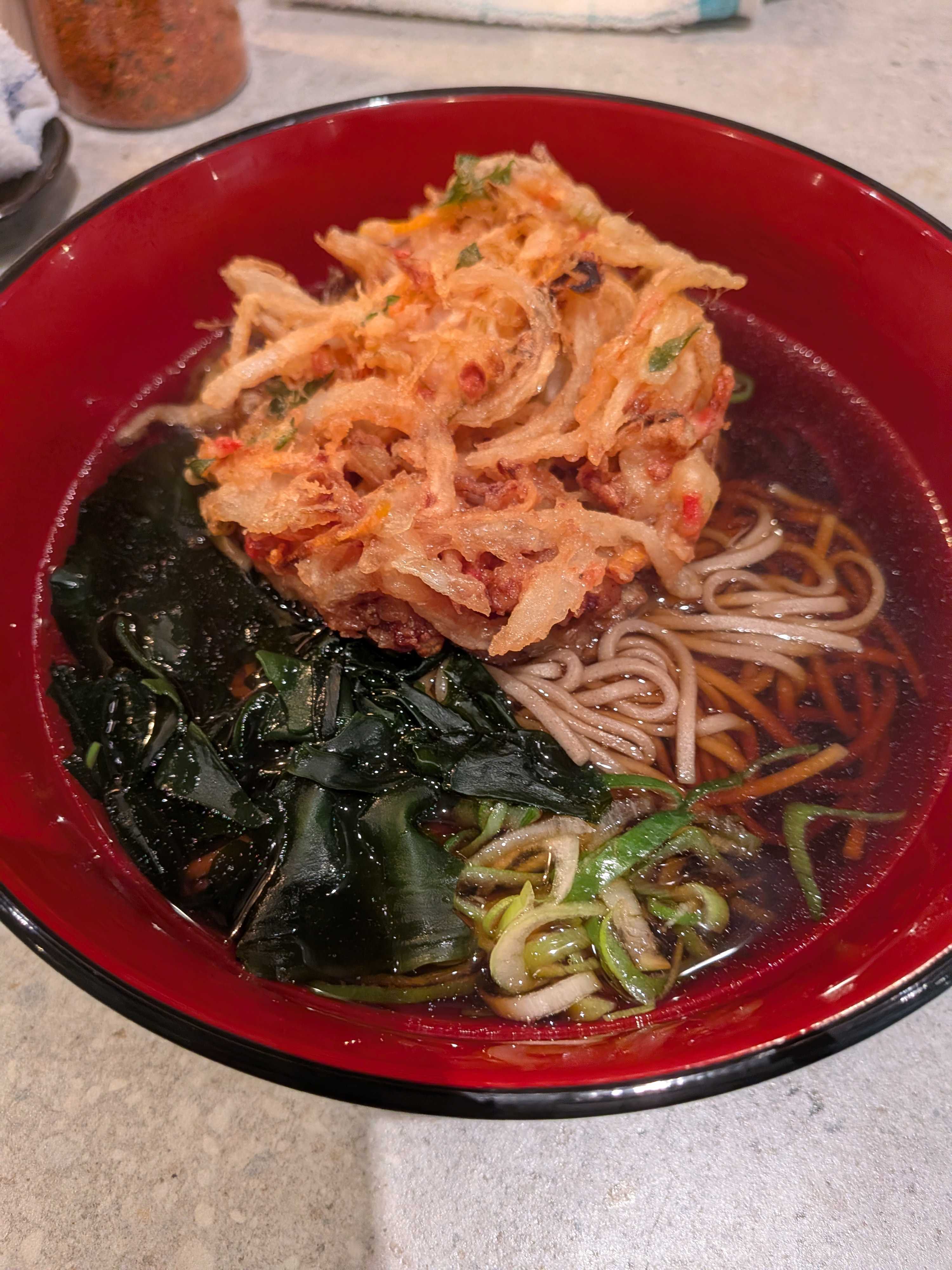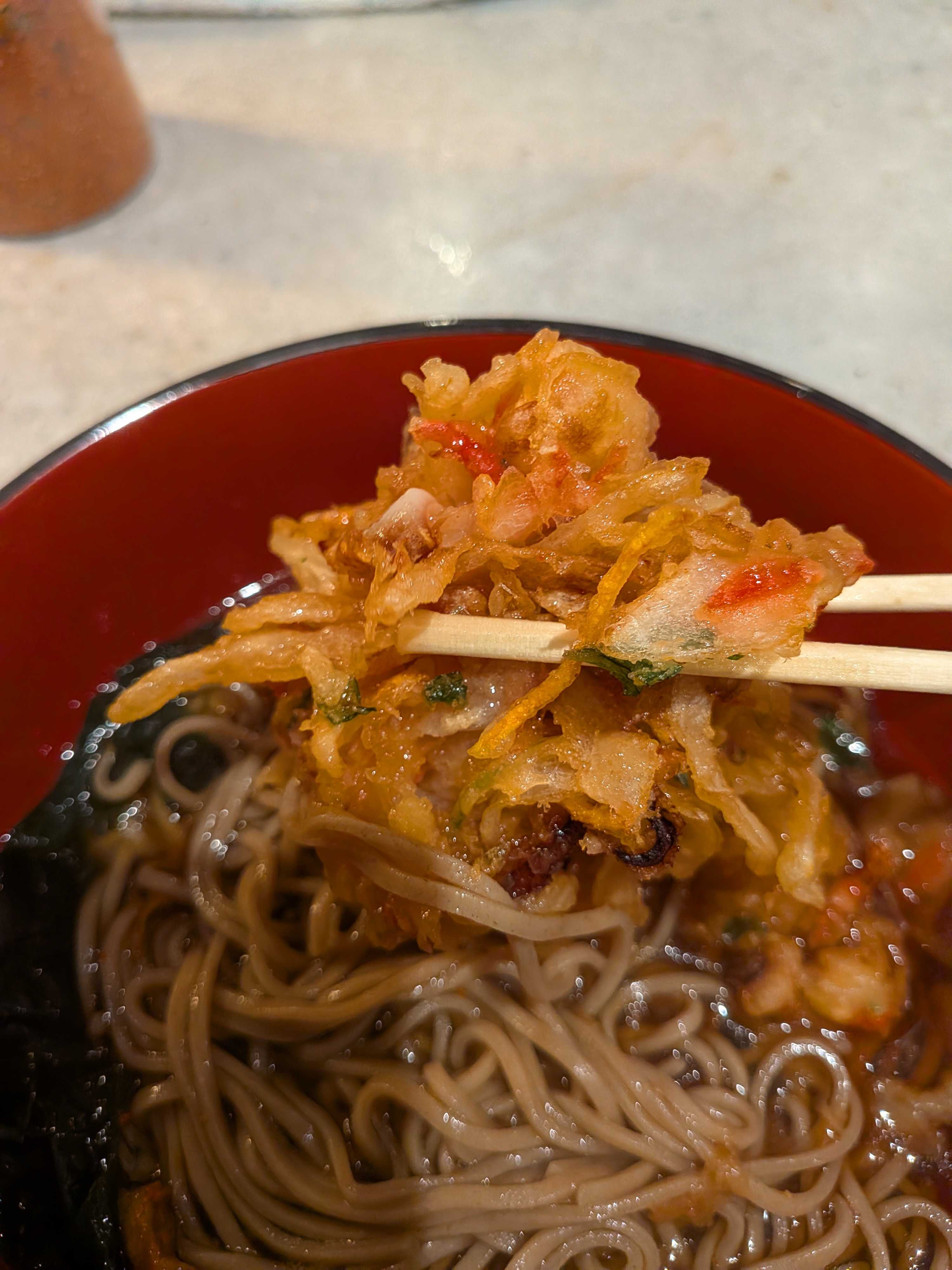 かき揚げに細いイカが入っていてイカの旨味がだんだんと