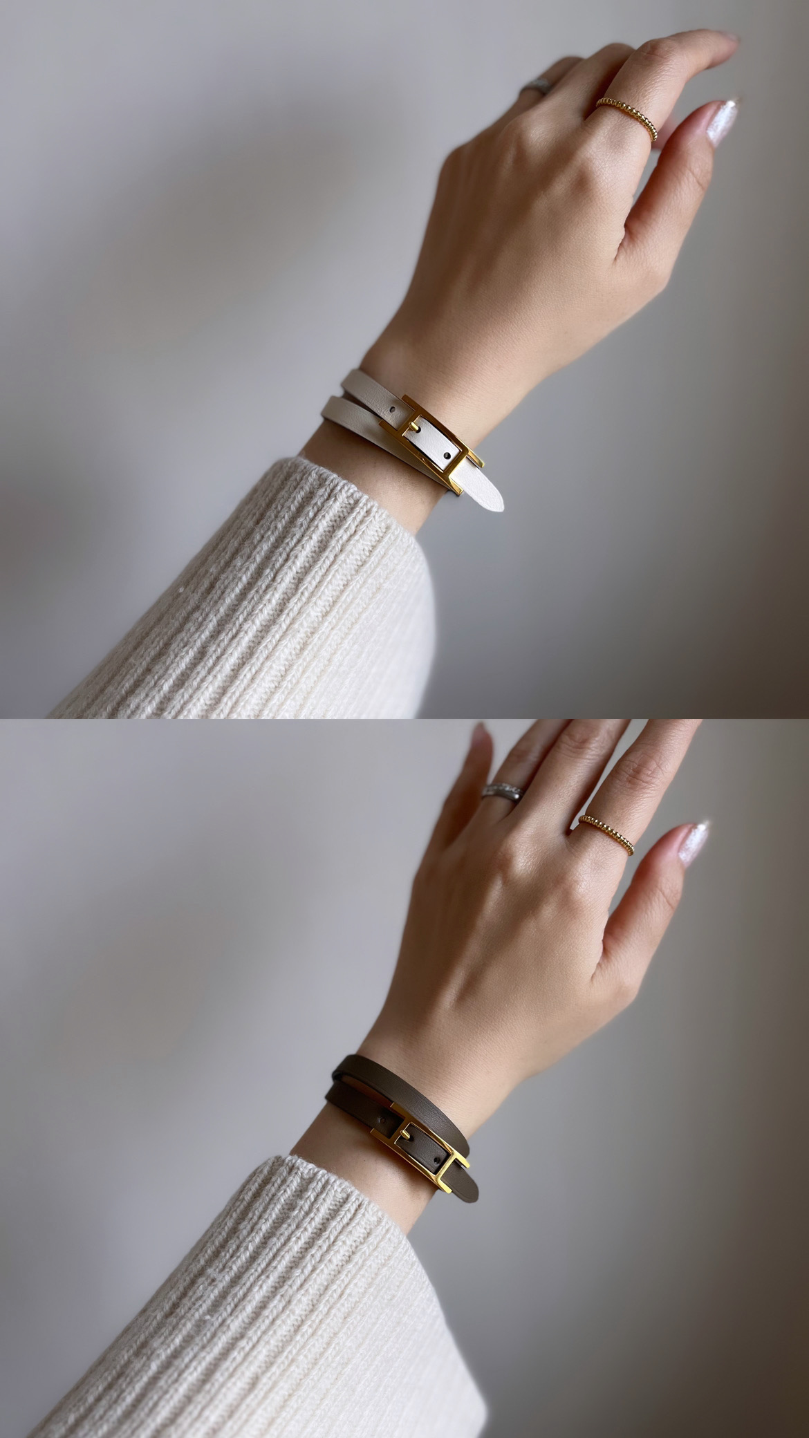 HERMES エルメス ブレスレット ビーアピドゥブルトゥール BEHAPI DOUBLE TOUR 064647CC レディース レザー ダブルラップ 2連 Hメタルパーツ GD金具 カラー2色