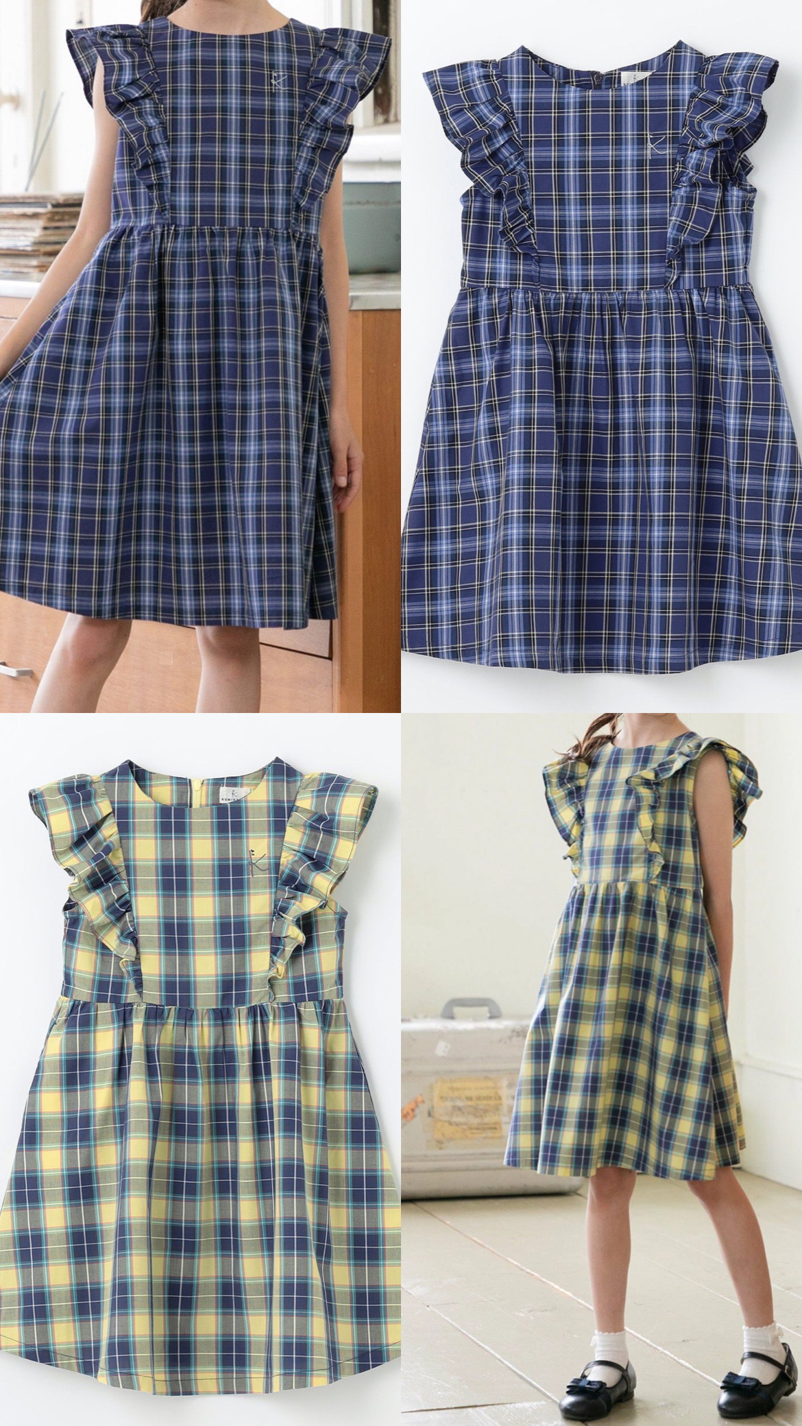 【SALE/40%OFF】組曲 KIDS 【110-140cm】チェックフリル ワンピース クミキョク ワンピース・ドレス ワンピース イエロー ネイビー【送料無料】