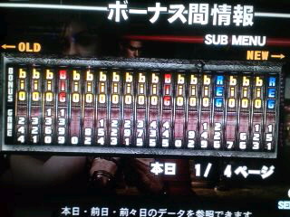 ・・・・・ていうか、先日は勝手に自爆しただけなんですけどねwとりあえず、リベンジに成功しました!明日は、一年ぶりくらいにちょいと並ぶ予定なので、挨拶はそこそこに2日分の結果報告です。 ━━━━━━━━━━━━━━━━━━━━━━━━━━━━━━━━━━━━━1/ 6 【天下無敵 サラリーマン金太郎】 CZ台 36 DZ終了ヤメ ※ KC30×1●-200 【ウルトラマン】 CZ後累計685 (121~) 175 青7 ※ 7揃い×1 39 赤7 ※ 7揃い×1 560 CZ終了ヤメ ※ ART×14 久しぶりに連チャン!ウルトラマンの天井狙いは、小さく収支を凌ぎつつ、一撃を待つ感じだね。●+17,600 【新世紀エヴァンゲリオン 約束の時】 BIG後累計850 (270~) (475 暴走RT) (535 覚醒RT) 859 R 【某機種】 7 × 210 ○ ※ ナビ10選択、追加ナビ32●-3,000 【巨人の星4】 ノーボーナス587 (759 超開眼チャンス) 1224 B ※ ART×8 1 RT終了ヤメ ●+8,000 トータル収支 + 22,400 ━━━━━━━━━━━━━━━━━━━━━━━━━━━━━━━━━━━━1/ 7 【悪魔城ドラキュラ】 2日で据え置きなら約700 (649~) 879 B 153 B ※ ART×5、フリーズ発生(BIG+ART99%ループ確定) 109 R ※ ART×4 10 CZ終了ヤメ プレミアのロングフリーズを初打ちで体験!ロングフリーズすると、ノイズが走った後にテレビの放送終了後の画像が出て、数秒画面が暗転した後に、確定画面が出ます。●+7,400 【悪魔城ドラキュラ】 2日で据え置きなら約950 (441~) 450 B 81 R ※ ART×3 2 CZ終了ヤメ●+8,200 【悪魔城ドラキュラ】 2日で据え置きなら約700 (548~) (865 天井ART) 1136 B 37 CZ終了ヤメ ※ ART×1 天井ART画面。枠が紫色に点滅します。●-400 【デビルメイクライ3】 累計約1000 (181~)※ 2枚がけで消化 (383 天井RT) 489 R●-600 トータル収支 + 14,600 ━━━━━━━━━━━━━━━━━━━━━━━━━━━━━━━━━━━━悪魔城ドラキュラを初打ち。打った感想ですが、一番印象に残ったのはBIG音楽かな。音質も凄くて、是非また聞きたいです。あと、最後の台を仕上げた後に履歴見れることに気づきましたw ドラキュラは、どうぞ狙ってくださいって感じな親切な仕様で好印象なんですが、客とびはかなり早いと思われます。早めに抜いておきたいですね。