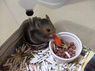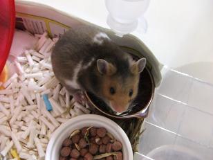 昨日わが家にやってきたこまち。すっかりリラックスしてくれている様子ですカリカリフードも食べてくれるようになり、お野菜などを直接指から受け取って食べてくれたりします♪すっかりリラックスしているためか…?こまちさん、そこはお野菜を入れるお皿ですフィット具合がイイ感じなのか、お小皿にはまっているこまちさんです。かわいいなぁぁぁぁ。こつぶが隣のケースでガンガン走ったり騒いだりしていても、マイペースで過ごしているこまちさん。まさに「静と動」…こつぶの落ち着きの無さが際立っています…2匹そろって暴れられても困るから、良しとしようかわいい娘たちです