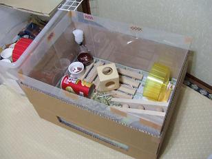 わが家の新入りこまちさん。先代から使われているケージで過ごしていましたが、手づくり新居が完成しました。ちょうど良い大きさの平べったいダンボールがあり、それを活かして内側には薄いプラ板で囲いを作りました。ダンボールだけだと、昔こつぶが穴を掘って脱走したので(汗)制作費300円。うーん、安い内側の囲いに使ったプラ板はA4サイズ3枚入りで100円。ダンボールの内寸にあわせてカッターで切って、ガムテ等で固定。こまちさん、気に入ってくれるかな??昨夜撮れたベストショットです美人でしょー。こまちさん。遊んでいてもしばらくするとねむたくなっちゃう、かわいいこまちさんです…こまちの新居はよしと、さて、あとはこつぶの脱走防止策だなぁがんばるじょ。
