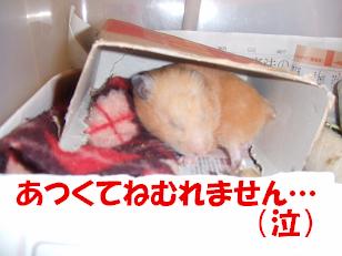 いやぁ。暑い…こまちさんも…こまちより暑さにダウン気味なのがこつぶ。キンクマさんは暑さに弱いのかなぁ…?先代マリッサも夏場はぐったり度がすごかった気が…。暑いのにフリースのお布団に潜りたがるから、麻ひもで似たようなお布団を編んであげました。…結果はイマイチのようでしたそのうち使ってくれるかな??そんなこつぶさん、最近ちょっとウンチの柔らかさが気になっていました。いろいろとネットで検索をしてみました。致命的な下痢になる前に病院に連れて行った方がいい!とたしかに。手遅れになる前に…。週末で、時間も時間なので、とりあえず出来ることは…と思い、鳥のえさを買って与えてみました。ハムスターに鳥のえさを与えるのは良いと聞いたこともあるし、パッケージに「殺菌作用」「腸内善玉菌の増殖」…とかなり魅力的な文字がかなり食いつきが良かったです。黙々と食べていました。あ、あなたまで…??こまちはこつぶに負けないくらいがっついていました効果があったのか、こつぶのウンチは程良い柔らかさに戻り暑さにはダウン気味ですが、夜中は元気に走ってますわが家のひまわりが次々と開花しています。今日はそのひまわりを持って、マリッサのお墓参りへ。こつぶのお腹の調子がイマイチだったり、同居人さんが仕事でトラブル続きだったりと、これは神頼み!!と思い、わが家の守護神マリッサの元へマリッサも暑さにダウンしてるかもしれないけど、よろしくちゃん