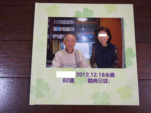 じいちゃんの闘病日誌アルバムを作りました。今日、届いたの。明日、母にプレゼントします楽天フォトブックで注文。闘病中、ずっと写真を撮っていたので貴重なじいちゃんの最後の数ヶ月の記録です。一枚一枚に貼付け作業をしているときは涙が出ました。家族とじいちゃんと一緒になって頑張った証を残すことができたのはカメラ、そうぐーちゃんが写ガールデビューしたことがきっかけです。カメラの魅力を教えてくださったブロ友の皆さんに感謝いたします。☆表紙の二人は私の父(通称じいちゃん)と母(通称ばあちゃん)です☆亡くなるおよそ1年前の写真。ぐーちゃんがプレゼントしたセーターを着ています。明日これを母に渡す予定です。ばあちゃん、生前のじいちゃんを思い出して泣いちゃうね。。。PS:ずっといろいろありましてブログ更新が精一杯です。 訪問もできず申し訳ありません。タイムラインはお返事しています。 皆さんからのコメントを有り難く読ませていただき頑張っています!