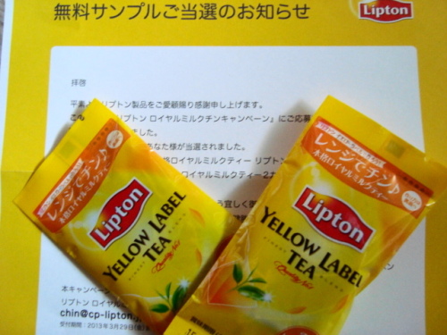 リプトンのサンプルが当たりました。当たったといっても毎週1万名、合計4万名ですから応募すれば、ほぼもらえたと思うんですが。キャンペーンは2月末で終了しています。この商品の特色はヒモとティーバッグをつなげる部分に「ホチキスの針が使われていない」こと。あれ?・・・今まで飲んできたやつってホチキスで留められていたのか・・・まったく気にしないで飲んでたので気づいてもいませんでした。「針がないので、このまま電子レンジでチンしても大丈夫」ということですね。イエローラベルティーバッグ50袋価格:630円(税込、送料別)では当選通知に載っていた作り方のとおりにやってみます。サンプル2袋。1袋にティーバッグが2個入っています。この2個を1度にマグカップに入れます・・・えーーー?なんでわざわざ2個に分けるんだ?最初っから1個にまとめておけば余計な包装使わずにすむのに?次に 水と牛乳を1:2の割合で。お湯じゃないのね。で、レンジで2分間あたためるだけ。 いただきまーーーーすうーーん・・・濃厚ではありますが、なんか物足りない。どっかで作り方間違えたのか!?いくら料理が作れないと言ってもこれを失敗するはずはない・・と思うんだけど。ちょっと上品な感じすぎてワタシにはあわんってことか。ああ、お好みでグラニュー糖をお加えくださいって。これが漫画に出てくる料理が殺人的に下手な美少女だったら間違いなく砂糖と塩を入れ間違えて 食べた男がもんどりうつ・・・ってシーンになるでしょう。◆ホットトイズ/HOTTOYS 1/6スケール スーパーマン ブリスター限定 グリーン・クリプトナイト付...価格:39,800円(税込、送料別)「ああっスーパーマンに間違ってリプトンじゃなくてクリプトナイト飲ませちゃった!!」 レンジでチンの後に法事でチーン・・になったら困ります。いや・・・もしかして・・・紅茶に塩を入れたら・・・おいしくなったり・・することは・・・あるのか!?スイカに塩とか隠し味的に使うじゃないですか。ただ、これは量の加減が問題だな。入れすぎると悲劇になることは目に見えている。慎重に慎重に・・・ほんのひとつまみ・・・ゴクリ・・・うむ・・・むむむむ・・・えーと・・塩の話で引っ張ったのは最後にこの企画を紹介する布石でありました。お家の「しお公正マーク」を探せ!フォト投稿キャンペーン:楽天レシピ家にある塩のパッケージに『しお公正マーク』があったら画像撮影。投稿すれば先着300名にもれなく200ポイント!塩についてツイッターでつぶやいて4万ポイント山分け!が3月29日まで開催中です。伯方塩業 伯方の塩★税込1980円以上で送料無料★伯方塩業 伯方の塩(1kg)価格:390円(税込、送料別)袋右下にあるのが「しお公正マーク」さっそく家の塩を探したけど・・・ありゃ?マークついてないぞな・・昔のパッケージにはついてないのか・・しようがないなあ、しおがないなあ~~あ、そうだ。2月11日の日記『ちょい足しシロップをちょいと試してみる』のシロップがまだ残ってたあ。こいつを加えれば・・・ロイヤルソルトシロップミルクティーの完成だ!これでいいのだ!やっぱり買えなかった半額PS3のせつなさを忘れるために飲むぜ・・・ああっ、あせりすぎて1秒早くボタン押してしまい『まだ販売されておりません』・・・画面戻った時には売り切れ・・