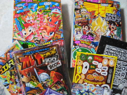 コンビニやスーパーで対象商品を含む○○○円以上の買い物のレシートで応募するキャンペーンがよく開催されています。で、対象商品以外にナニを買うかが問題となるのですが・・たとえば対象商品が100円のチョコで、そのチョコ1個以上を含む500円以上の買い物、が条件の場合、チョコ以外に400円分買わなきゃいけませんよね?ワタシの場合、ボールペンとかテープとか糊とかの文房具か雑誌です。コンビニのキャンペーンにハズレても、雑誌で応募した懸賞に当たるかもしれません。逆に雑誌でハズレてもコンビニ応募分で当たるかもしれない、1回の買い物でWチャンスというわけです。ということで今月も雑誌買いまくりです。今回はスーパーの懸賞なので・・・スーパーの雑誌コーナーってエロ本置いてないですよね・・・従って今回は少年コミック雑誌を中心に買いこんできました。その中で気になったのが・・・【送料無料】少年ガンガン 2013年 04月号 [雑誌]価格:540円(税込、送料込)月刊少年ガンガンです。楽天ショップではすでに売り切れています。えーと『鋼の錬金術師』が連載されていた雑誌、と言えばおわかりでしょうか、連載終了後は・・近所の店には置かなくなって、今回は隣町のスーパーで1冊発見。まあ、それも仕方ないかも。なぜなら分厚くて重い!!持ち帰るのも一苦労!?何冊も仕入れて置き場所占拠されるの、お店も躊躇するような大きさですから!?一緒に買った月刊少年マガジンと比べてみましょう。少年ガンガン 540円 1020ページ重さ 1.1キロ 厚さ 5.8センチ中学生対象の日本一元気な少年マンガ誌・・・え?中学生対象だったんか・・・対する月刊少年マガジン 月刊少年マガジン 2013年4月号 【表紙】 capeta (雑誌) / 講談社価格:460円(税込、送料別)こちらは在庫ありますね。460円 820ページ重さ 1.05キロ 厚さ 4.5センチ月刊漫画誌では1番売れてる70万部越え・・今月でついに『capeta』完結。マガジンでも厚いなあーと思うんだけど、ガンガンの厚さはもうヤケクソみたいな!?値段80円違って、200ページ以上多い、さらに付録のCD付きか・・・ 昔のアフタヌーンも1000ページ越えてたけど、こんなに厚くはなかったような・・紙質の関係かなあ?同じ値段ならページが多くて付録までついてお得かな、と思っちゃいますが、困ったことにページが多くても読みたい漫画が少ない・・いや、ごくたまにしか買わないので知らない漫画の方が多いということもありますが・・あ、中学生対象だからか!?なにしろ月刊少年マガジンの方は・・・『少年』よりはるかに高い年齢層が読者に多い気がします。。「なんと孫六」なんて30年以上続いてるんですよ・・・連載開始時、少年だった読者、今も読み続けてるんでしょうか・・◆5000円以上で送料無料◆なんと孫六 さだやす圭 【1-78巻/78冊セット *以下続刊】 【中古】 ...価格:43,700円(税込、送料別)読者投稿コーナーも年齢は記載されないんですけど、投稿内容から、絶対に「少年」じゃないだろ!ってのが多いですし・・あ、実はワタシも・・・もう何回も採用されていて記念品たくさんもらってるんですがwついでにPSP本体が当たったのも月マガなので、相性ぴったり!?まあ、いまや実際の少年たちは漫画雑誌を読まなくなってかつて少年今も心は少年?の方々が読み続けてるってことでしょうか。懸賞も、賞品や当選数が減ってきてるんで、はたしてこれから雑誌懸賞はどーなっていくんだとの不安もありますが、ま、今はとにかくハガキ書くのみです!明日は、さらに若返って雑誌リポートが続く予定です。