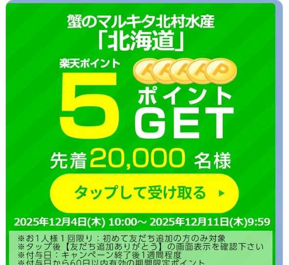 先着2万人。12月11日9時59分まで。