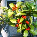 神社では、祭事の際に『榊』を用いてお祭を行います。今日は榊について少しお話を致します。『榊』・・・椿(つばき)科「栄える木」が略されて「さかき」になったとも、神が鎮座する地の境の木とのことから「境木(さかき)」になったともいわれております。漢字の「榊」はまさに「神」の「木」と書いて「榊」なのです。 古事記のお話にもある、天の岩戸の一説の中に「榊」が登場します。弟神・スサノオの悪行に困り果てた太陽神・アマテラス(天照大神)が「天岩屋戸」の中に閉じこもってしまい、天地は暗闇となり災いが続きました。困った他の神々は話し合い策を練りました。知恵者・オモヒカネ(思兼命)の案により、鶏を鳴かせたり、まが玉の数珠や鏡を作り、天香具山から抜いてきた榊に飾り付けたり、祝詞を唱えたりしました。・・・・という、お話です。このことからも、神代の時代より「榊」は神事になくてはならないものとされてきました。年中緑の葉を繁らせ、生き生きとした状態を保っている「榊」は強い生命力の象徴とも言えるでしょう。烏森神社の境内には榊の木を10本ほど植えてあります。神社の境内に植えることで、神様の神聖な力をより強く受けて成長した榊を神籬・大麻・玉串等に祭典で用います。丁度、境内の榊の何本かの木には「榊の実」が熟れて実っています。この実を食べに、山鳩やメジロなどの野鳥もこんな都会の新橋のビルの谷間に訪れたりもします。可愛らしい鳴声を披露してくれます。自然や季節を感じ、心和みます。