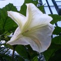 境内に「エンゼルトランペット」という花が植えてあります。気が付けば、大振りな花を咲かせているのですが・・・。☆木立朝鮮朝顔☆・茄子(なす)科。 ・学名 Datura suaveolens Datura : チョウセンアサガオ属 suaveolens : 芳香ある Datura(ダチュラ)は、この植物の ヒンズー名「dhatura」から変化した名前。 Brugmansia(キダチチョウセンアサガオ属) として分類されることもある。 ・開花時期は、 6/5頃~11/末頃。・中南米、インド地方原産。 ・草ではなく「木」です。 ・夏から秋まで、芳香のあるラッパ形の 大きい花を下向きに咲かせる。 夜に香るそうです。 ・別名では 「エンジェル・トランペット」、 「エンゼル・トランペット」、 「エンゼルス・トランペット」、 とも呼ばれ、品種もいろいろ調べた開花時期(年に3度=6月・8月・10月開花)とは違って、今になって花を付けたようです。11月下旬の陽気が続いたせいでしょうか?この花は白っぽいですが、普段はピンクの花を沢山咲かせます。