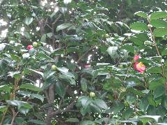 ここ毎日メジロが来ていましたが、やっと写真が撮れました。社務所前の柵の中に植えてある、榊の木にとまっていました。普段は「ヒヨヒヨ」と可愛らしい鳴声で鳴いているので、「あ、いるな」と思うのですが、なかなか姿は見せてくれません。枝と枝との間を良く見ると…たまに姿を確認出来るのです。椿も花を咲かせそうです。初午祭は毎年、大変寒い中(雪の降った年もあります)、境内でお餅つきをしております。今年は暖かくなると良いのですが。3月4日 初午祭皐月會による「餅つき奉納」があります。当日の昼頃から、参拝された方につきたてのお餅を振舞っております。当社の初午祭は、江戸で一、二を争う祭として有名でした。現在でも江戸時代のことが描かれた沢山の書物やお芝居などにも取り上げられております。