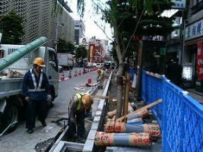 新橋駅前の機関車に、アスベストが含まれているということで、現在その撤去作業が行われています。また、新橋機関車広場から、当社近隣の柳通りでは、歩道拡張工事が行われており、ニュー新橋ビル前から当社参道横の道に直接通り抜けが出来ない状況になっておりますので、ご注意ください。柳通りの工事の様子。この道路は、付近が駐車違反の重点地区となっており、かねてより規制が厳しくされておりましたが、このような工事も重なり道路の幅も狭く、通行も歩行にも影響が多少出ているようです。駅からご参拝の際は、烏森通りの参道よりお参り頂ければと存じます。また、境内の天水桶ですが、現在は正面から撤去され、裏の方に保管しております。