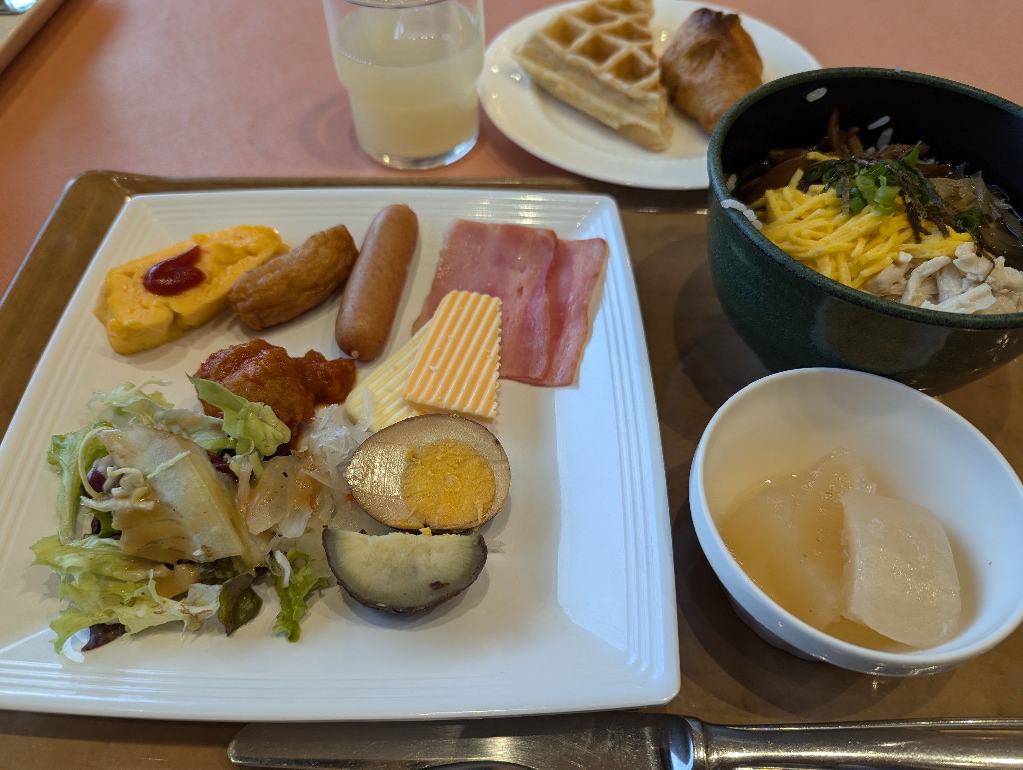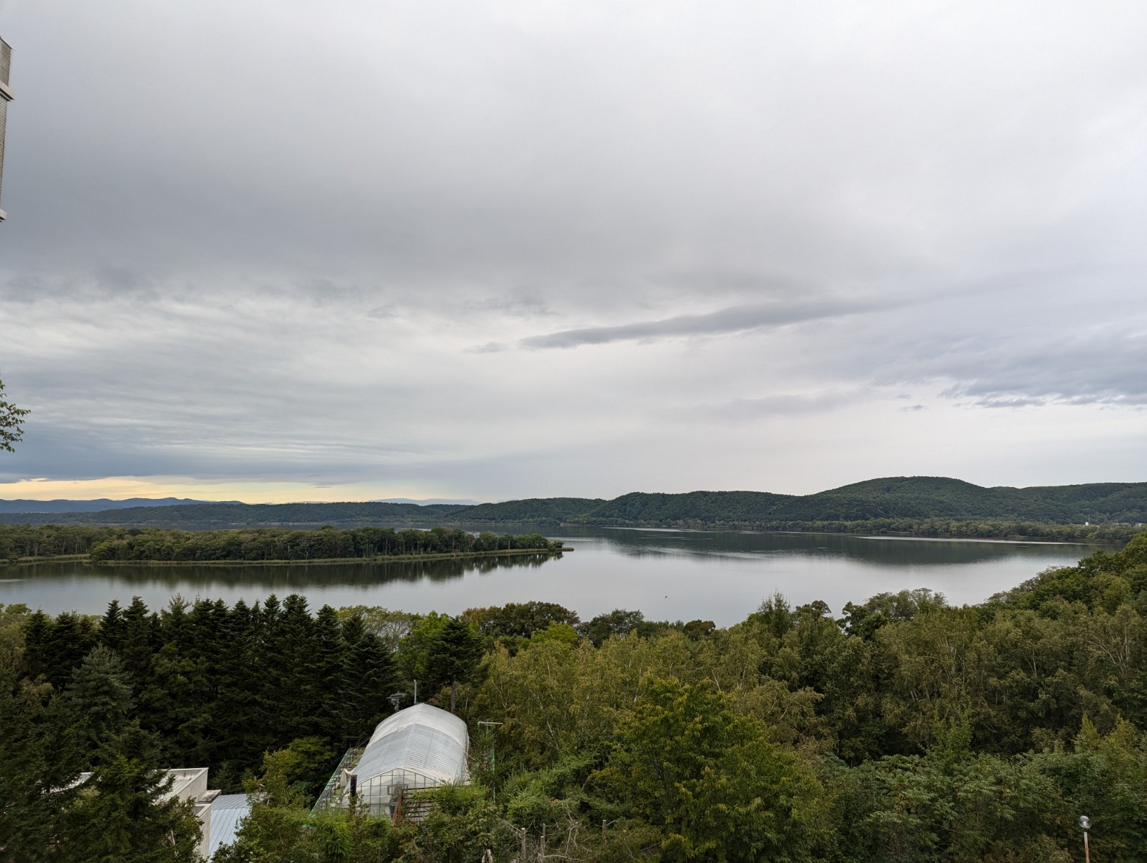 北海道ツアー3日目。昨晩は見えなかった網走湖。今日は曇り空ですね。最初の目的地はオシンコシンの滝と知床五湖。知床半島を目指します。小清水原生花園の辺りです。奥に湖が広がってます。草を食べてもらうために馬が働いてます。上手いことに花は食べないんだそうです。昨日はずっと内陸部だったけど今日は海がある。オシンコシンの滝に到着。最近、雨が降ってないので、いつもより水量は少ないようです。更に知床半島を進みます。この辺りは熊の住処なので、時々バスからも熊を見かけるとか。ガイドさん曰わく「ここは熊の家で、人間がお邪魔してる側ですよ!熊が出没じゃなくて人間が出没してるの!」と。今回は熊は見かけませんでしたが、鹿は見かけるどころか、ちょいちょいバスの前を横切って行かれます。知床五湖に到着。今回はそんなに時間が無いので一湖だけ見て戻ります。自然を守るべく、観光客が歩けるのは木道だけです。高い位置にあるのは熊対策。木道の端に電流が流れるようにしてあって、熊が登れないようにしてあります。周囲の緑は笹です。そういえばガイドさんの説明で、根曲がり竹が笹である事を知りました。筍だと思ってた…笹(チシマザサ)の根元が雪の重みで太くなり竹のようなフシが出来る。それを北海道では筍と呼んでる。ちなみに北海道には自然に生えてる竹は無い…だそうです。天気が悪く見えづらいですが知床連山に囲まれ、奥にはオホーツク海。一湖が見えるところまで来ました。奥にある池が一湖です。帰りにもう1つ展望台。晴れていれば、きっと綺麗な山々が見えたはず。次は来た道を戻り、知床半島に入る手前の辺り斜里町で昼ご飯です。ガーデンハウス藤苑。鮭のちゃんちゃん焼きを目の前で作ってました。ここから南下して釧路方面に向かいます。また内陸部です。途中の清里町は砂糖大根(てんさい)の産地だそうです。あとジャガイモ。最近は、じゃがいも焼酎を売り出し中。以前、山梨の清里に行こうとして調べてる時に、ちょいちょい邪魔してきた北海道の清里。何度も乗り換え案内で、北海道の清里に連れて行かれようとした。ここが、あの清里かー!って、ちょっと感慨深かった(笑)そうこうしてるうちに現れた煙が上がる山。硫黄が噴出してるそうです。この後しばらく景色の目印。この山の裏(東側)には阿寒湖がある。でも今回行くのは西側の摩周湖。だいぶ山を上がってきたので、阿寒湖が見えだした!そして摩周湖に到着。摩周湖は霧の摩周湖と呼ばれるくらい霧が多い。そして霧が出てると湖は見えない。晴れてても霧が出ていたり、雨でも霧は無かったり、兎に角行ってみないとわかりません!とガイドさんが言ってましたが果たして…霧は無い!水鏡も綺麗に出ていて良い。テラスがあって、ゆっくり摩周湖が見られます。(土日は混雑してるそうな。)湖と反対側も綺麗でしたよ。阿寒岳。次は更に南下して釧路湿原。を眺める展望地らしいけど、木が生い茂っていて殆ど見えなくなっているので、あんまり期待しないでね!…らしい。釧路地方に入ってくると今までと違って農地が減って牧場に。釧路は霧が多く夏でも気温が低いので、作物は育ちにくい。変わりに涼しいので暑さが苦手な牛には良い。とか。途中通る鶴居村は、その名の通り鶴、丹頂鶴がいる。普通にいる。車窓からも何度か見かけた。普通の鶴は渡り鳥だけど、丹頂鶴は渡らないでずっと居るらしい。渡り鳥は群で行動するけど、渡らないので群れず、家族単位で行動するんだって。なので居る時はツガイ、もしくはツガイ+子供。実際見かけたのは全部2~4羽組だった。動いてるバスから遠くにいるやつをスマホ撮影。わかりづらいけど3羽います。釧路湿原の展望地に到着。遠くに、ちょっとだけ湿原が見える!見えるよ!ガイドさんに先に言われていたのでガッカリしない!本日の観光は終了。宿泊地の十勝川温泉に向かいます。釧路から帯広なので、そこそこの移動距離。十勝平野に入ると牧場+農場。じゃがいも、大豆、小豆、あとブドウ畑もあった。十勝ワイン用のぶどう。この辺りで黄色いのは大豆。ホテル到着。今日は「ホテル大平原」です。お部屋。晩ご飯はバイキングでした。夜は札幌で買った日本酒と、売店で買ったチーズ。この辺りの温泉は、モール温泉。モール温泉は泥炭由来の植物由来成分を多く含んでいるらしい。色が黒いお湯です。想像してたより更に黒かった。でも、しっとりしてる。北海道も明日でお別れです。