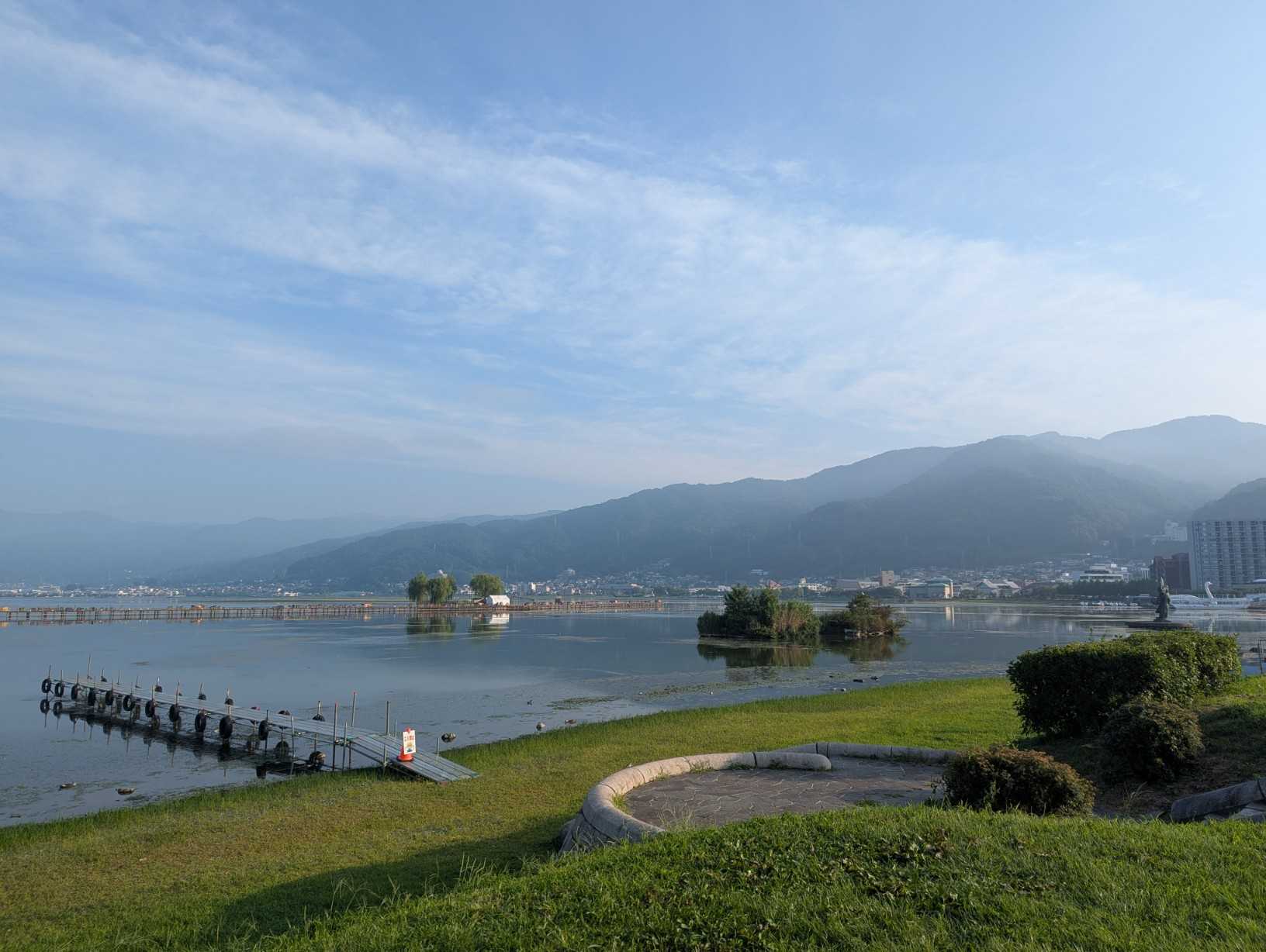 4日目。行程半分終わりました。最初2日間は暑さによる熱中症との戦いで帰りたい気持ちが上回ってましたが昨日は涼しい千畳敷で過ごしたので体調も気力も復活しました。朝の涼しいうちに諏訪湖を散歩。歩道に植えられている木に実がなってます。諏訪の名産は恐らくカリン。昨日の貸切風呂の名前もカリンの湯だったし、ちょいちょいカリン推しな感じがある。袋がかかってないところがありました。やっぱりカリンですね。広い歩道と自転車専用レーンが整備されているので、サイクリングで諏訪湖1周するのもよさそうですね!夏でなければ!あと冬も絶対寒い!石彫公園まで来ました。今朝は湖面が穏やかで綺麗です。鳥がいっぱいいますね。そこの島の前で花火を打ち上げているようです。水草が増えすぎて困ってるっていう記事を見かけましたが、確かに水草多いですね。ホテルに戻って朝食です。今日はホテルの朝食をつけてます。ビュッフェ形式です。ホテル10時発の送迎バスを予約しているので、その前に高島城に行ってきます。ホテル前の道を湖と反対方向に真っ直ぐ行けば見えてきます。10分程度で到着。裏側ですね。時間があるので横の冠木門に行ってみます。ここがベスト写真スポットなようです。中からだと木が邪魔して天守が撮れないですね。9時のオープンを待って入城します。諏訪湖はホテルや病院が遮って、そんなに見えないです。下に見えるのは…りんご?こんな街中にりんご畑?帰りに隣のドラッグストアの駐車場から見てみよう。反対側は谷間に富士山が見えるはずなんですが、今日は見えません。帰りにりんご畑を覗きに行ってみました。りんごですね~もうすぐ収穫ですかね~長野の秋映とシナノスイートが好きなので秋が楽しみです。ホテルのバスで上諏訪駅へ。上諏訪駅は構内に足湯があります。いつか足湯に入りたいんだけど、なかなかチャンスが。JRで上諏訪→塩尻→奈良井と乗り継ぎます。奈良井の駅で手荷物預かりをしてます。外国の方も含めて観光客は多いです。平日なので、これでも少ないんでしょうね。テレビや写真で見るところだ~!テンション上がります。山が迫ってくる感じが良いですよね。レトロなバスが走ってます。史料館に入ります。奈良井宿の古民家の宿に泊まるとこんな感じなんですかね?一度泊まってみたいものです。次は長泉禅寺へ。本堂の天井に龍の絵が描かれています。宿場町の端っこ辺りまで来ました。ここまで来る観光客は少ないみたいですね。だいぶ人が減りました。端っこにある鎮神社です。可愛い狛犬がいます。参拝して御朱印をいただきました。駅に向かって戻ります。反対側から見る奈良井宿、映像ではあまり見かけませんが、こっちも良いですね。途中から宿場町を離れて木曽の大橋を見に行きます。宿場町の後ろの線路を挟んで反対側です。大きいのかな?昔なら幅は大きい方なのかな?駅に戻ります。お昼ご飯を食べるほどの時間はないので我慢。13時25分のJRで松本へ。チェックインまで時間あるし、暑いのでウロウロはしたくない。松本駅前にある人気の喫茶店に行ってみます。珈琲美学アベさんです。私の前まで6組待ちでしたが、2組は呼ばれた時にいなくてキャンセル。20分待ちで入れました。とても素敵な喫茶店です。人気なのが、モカクリームオーレ。氷とアイスが入ったグラスに、目の前でコーヒーとミルクを注いでくれます。モカクリームオーレとチーズケーキを注文しました。チーズケーキのお皿のハートの切り抜きの影が可愛い~モカクリームオーレもケーキも美味しかったです。入店待ちの間に松本で人気の小松パンさんが食パンを運んで来てたのでパンもきっと美味しいと思う。私はグルテンの分解能力が低くパンは1人前が食べられないんですよね。残念。今日のホテルは駅のすぐそば、ホテルニューステーションさんです。松本城に行きたいのですが暑いので、17時くらいに出て夕焼けとライトアップを見ようと思います。松本駅前からバスで松本城まで来ました。松本に来るのは5度目。北アルプスを背負った松本城を1度は見たいのですが今日もダメですね。途中からモデルさんが現れました。日没までもう少しあるので、湧き水を汲みにいきます。松本市内はあちこちで湧き水が湧いてます。飲めます。場所によって味が違うので、飲み比べとかもオススメ。私のお気に入りの場所が松本城の前。信用金庫ところにある汲み場。空いたペットボトルも持ってきたので帰りもいっぱい汲んで帰る。松本城前の信号前のベンチでくつろぐ猫を発見。だいぶ日が沈んできました。モデルさん、まだいます。日没までベンチで休憩。ライトアップ始まりました。ライトアップの写真を撮ったら、明日は朝早いので早々に撤収。涼しくなったので歩いて帰ります。蕎麦食べたいな~と思いながら戻ってる最中にすぐ入れそうな蕎麦屋を発見したので入りました。「手前ざる 俊」さんです。駅の近くです。実は割と人気店らしく、