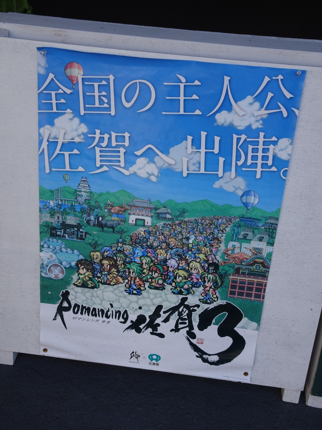 過去の記録です。佐賀県とスクウェア・エニックスのゲーム「ロマンシングサガ」のコラボ。ロマンシング佐賀としてイベント第3弾をやってたんです。昨年のイベントも参加しました。記事を書いてる現在2025年、10周年イベント開催中です。もう10年か…まぁ、そのロマンシング佐賀+αで行ってきました。写真は少な目です。まずは、有田焼が見たくて有田へ。有田駅ではなく1つ手前の上有田駅でJRを下車。有田駅から上有田駅の間が窯や陶器屋が密集してるところです。どちらかというと上有田駅の方が密集地に近いかな?陶芸市にも行った事がありますが、臨時駐車場は上有田駅近くでした。上有田駅近くに陶山神社という神社があって、ここの鳥居は陶器製なんですよ!これが見たくてやってきた!(わりには写真が無い)有田の後はJRで武雄に移動して、そこからバスで嬉野へ。足湯もこんな感じ。これ街中にある足湯です。椅子とテーブル付き。昼間は地元の老人たちの井戸端会議場で空く気配がなかった。普通の足湯もあるよ。こっちは子供を保育園に連れて行った後のお母さんの井戸端会議場だった。嬉野の人たち、足湯しながら無料でお喋り出来るなんて羨ましい!うちの近所にも欲しいわ。こちらは公衆浴場シーボルトの湯。レトロな洋館だけど浴場です。2日目は、嬉野バスセンターから高速バスで博多へ。確か、博多に2泊して神社巡りをしたはず。市内の住吉神社、櫛田神社、筥崎宮、香椎宮。それから宗像大社と宮地嶽神社。宗像大社は宗像駅からバスで辺津宮、更にバスで港に行ってフェリーで大島に渡ってレンタサイクル借りて中津宮と沖津宮遙拝所に行った。宮地嶽神社は福津駅から徒歩30分。バスもあるけど本数少ないのであるいた。宮地嶽神社だけ写真があったわ。嵐のJALのCMで人気になったところ。実は階段に大勢が座って日没待機中。この日は曇りだったのと、参道の正面に夕日が沈む期間ではないので、こんな感じ。写真が少な目でお送りしましたが、オタク活動と神社巡りの旅行でした。