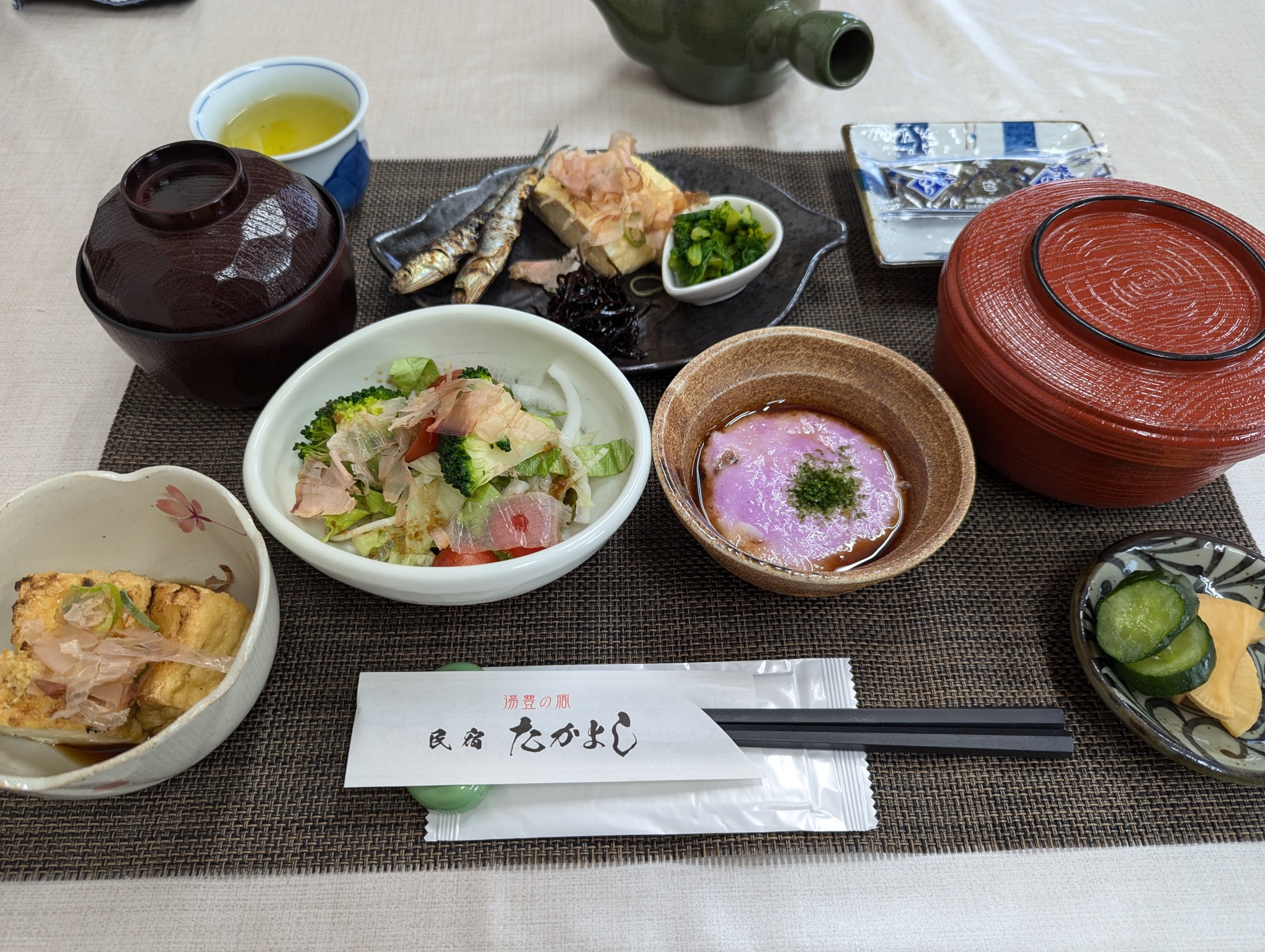 今日は日本一長い路線バス、八木新宮線に乗車。奈良の大和八木駅から和歌山の新宮駅まで、約6時間半、168停留所の路線バスです。途中3回の休憩をはさみながら進みます。大和八木駅前から乗車。普通の路線バスです。しばらくは町中を走ります。最初の休憩地点は乗車から1時間半、五條バスセンター。少し前まで前にイオンがあったようですが、移転して解体工事中。何もなく仮設トイレだけが設置されていました。約10分のトイレ休憩です。五條バスセンター出発前に大和八木駅から終点・新宮駅まで行く方の確認がありました。私含めて3人が完走、残り10人程度は十津川で降りるようです。五条駅までが町中、その後払い山間部へ突入。山です。小さな集落が点在してますが、この後は基本的に、ほぼ山と川です。次の休憩地点は約2時間後の上野地です。少し長めの25分程度の休憩があります。バス停から歩いて2分ほどの所に谷瀬の吊り橋があります。待ち行列になるし時間もないので、「きゃー怖~い」とかやってる時間ないです。さっさと行って!って雰囲気になります(笑)半分まで来ました。ここで引き返します。私は途中まででしたが、休憩時間を目一杯使って渡りきってきた猛者はいました。お昼ご飯は柿の葉寿司です。昨日買ってました。常温で日持ちするので重宝します。さすが修験者の弁当。再び山間部を進みます。最後の休憩場所は約1時間後、十津川温泉です。殆どの方がここで降りて行かれました。足湯があります。でも10分の休憩でトイレに行ったら足湯の時間は無いです。バスセンターの前の景色。十津川温泉も行きたいですが、公共交通機関だとこの路線バスに乗るしか無いので大変。車推奨です。ここで終点まで行く3名に記念品の完全乗車証が配布されました。普段は檜の乗車証なのですが、完全乗車1万人突破記念で檜のキーホルダーになってました。乗客、残り3名。終点までこのままかと思いきや、本宮大社前で大勢の人が乗り込み一気に満員に。しかもインバウンドのお客さんばっかり。そして大和八木から6時間半、終点の新宮駅に到着。着いた~!長かった!トイレの心配もしてたけど、大丈夫だった。念のため大人用オムツ仕込んでましたが、使用せずに済みました。良かった。この新宮の子、可愛い。今日はマグロ食べたくて勝浦に宿を取っているので、JRで紀伊勝浦へ移動します。15分程度ですが特急使います。海側の席。ギリギリ日没前で景色が見える。山ばっかり行ってるので海は新鮮。今回はこの後はずっと海側です。紀伊勝浦到着。紀伊勝浦に来るのは2度目。ここで生マグロを初めて食べて、マグロの美味しさに気付いた。また食べたい!今日泊まるのは駅の西口(裏側)の目の前、「お宿はな」さんです。レトロなお宿です。海外のお客さんが多かったです。温泉とシャワーがあって、温泉はチェックイン時に予約する予約制、シャワーは開いていれば自由に使えます。温泉が借りられるのは30分なので、先にシャワーで身体を洗っておいて、温泉はゆっくり浸かる作戦にしました。(前のグループがキャンセルになったので1時間使って良い事になりましたが。)晩ごはんを食べに出ます。その前に港を見に行きます。紀伊勝浦駅前。真っ直ぐ行けば、すぐ港に着きます。側に港を眺めながら入れる足湯があります。ここは明日の早朝に来ようと思います。晩ごはんは駅目の前のbodaiさんにしました。食べログのメニューを印刷したものが置いてあったのですが、内容がよくわからず…マグロ食べたいんだけど…とりあえず贅沢海鮮丼を頼んでみました。思ったのと違うけど、まあいいか。付け合わせの焼いたマグロが美味しい。雨が降り始めたので、宿に退散してゆっくりします。今日はこれで。