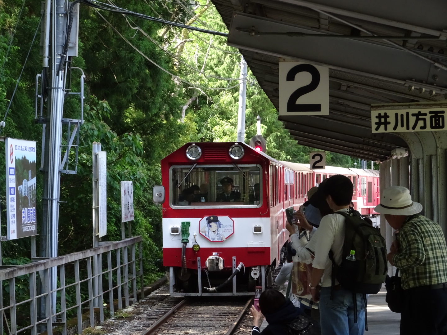2日目です。今日は奥大井湖上駅を目指します。寸又峡温泉からバスで奥泉駅へ行きます。電車との接続の都合で、千頭ではなく奥泉から井川線に乗ります。井川線は珍しいアプト式で走行する区間があります。アプト式がどういうやつかは、以前ブラタモリで見ました。アプトいちしろ駅でアプト式の電機機関車を連結します。停車時間が長いので、みんな降りて連結作業を見学してます。このレールの窪みにタイヤ側の窪みを咬ませながら急勾配を登るらしいです。再出発~長島ダム駅で先程のアプト式の機関車は外れます。景色を楽しみながら奥大井湖上駅に到着。奥大井湖上駅はその名の通り湖上の島に駅があります。駅しかありません。線路脇が歩道になっていて渡れるので渡って島から出ます。トンネルの上を通るように階段があります。トンネル上からの写真。そこからちょっとだけ山歩きして、奥大井湖上駅の対岸に向かいます。よく見かけるやつです。いいタイミングで電車が来ました。この撮影スポットの少し上に車道があってバス停があります。本数は超少ないです。一緒に撮影していた台湾のお兄さん達はバスが来るのでダッシュで去って行きました。電車も次は数時間後なので、私は歩いて隣の接岨峡温泉駅に向かいます。下り坂と平地で30分程で駅に到着。まだ時間があるので、お昼ご飯を食べに近くの温泉施設「接岨峡温泉会館」へ。ご飯を食べてもまだ時間があるので、温泉にも浸かりました。これでもまだ次の電車まで1時間以上~と思ってたら、1時間早くバスが来る事に気付きまして、接岨峡温泉駅前から千頭駅までバスで帰る事にしました。千頭駅から再びバスで寸又峡温泉へ戻ります。