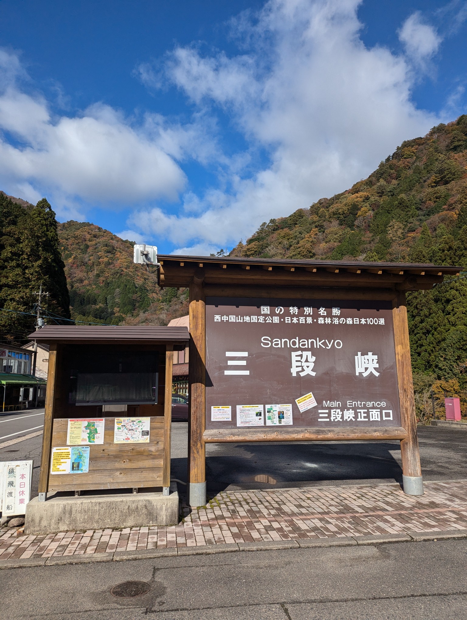 紅葉が見たい!そう思って、三段峡の紅葉見頃のお知らせを受けて見に行って来ました。三段峡と言っても上流部(三段峡)ではなく、入口の方です。車の運転が出来ないので車が無いと行けない上流部には行けんのですよ!(涙)私が行けるのは公共交通機関で行ける入口までです。コロナ禍にここに来た時は豪雨による崖崩れで夫婦淵までしか開通してなかったので、今日はその先の黒淵に行って渡し舟に載ります。黒淵までは遊歩道を歩いて小1時間です。入口はまだ紅葉いまいち。まず姉妹滝。先に進みます。ぼちぼち黄色が増えました。30分程で夫婦淵に到着。前回は夫婦淵と言いましたが、実際はもう少し先の休憩所まで行ってます。この先は未知のゾーン。三段峡の岩や石が好きです。この切り立った崖の様子とか。そうこうするうちに黒淵の黒淵荘が見えてきました。黒淵に到着。渡し舟!後で乗るぞ!黒淵荘はお手洗いと軽食の提供があります。渡し舟の前に、黒淵荘で昼ご飯。渓谷を眺めながらの猪カレー。夏場は流しそうめん(卓上型)が人気みたいですよ。休憩後は念願の渡し舟。今年は紅葉が遅れた事で、本来なら赤色→黄色の順番なのに黄色が先に来ていて赤がまだ紅葉してないらしいです。本当に今年は変な気候ですよね…終点につきました。乗船時間10分くらいです。次は赤色多めの時期に来たいな~来た道を戻ります。帰りは急ぎ足で40分ほどでバス停到着。黒淵は綺麗だったけど、今年の紅葉はちょっとイマイチ?よね?またリベンジしたいです。