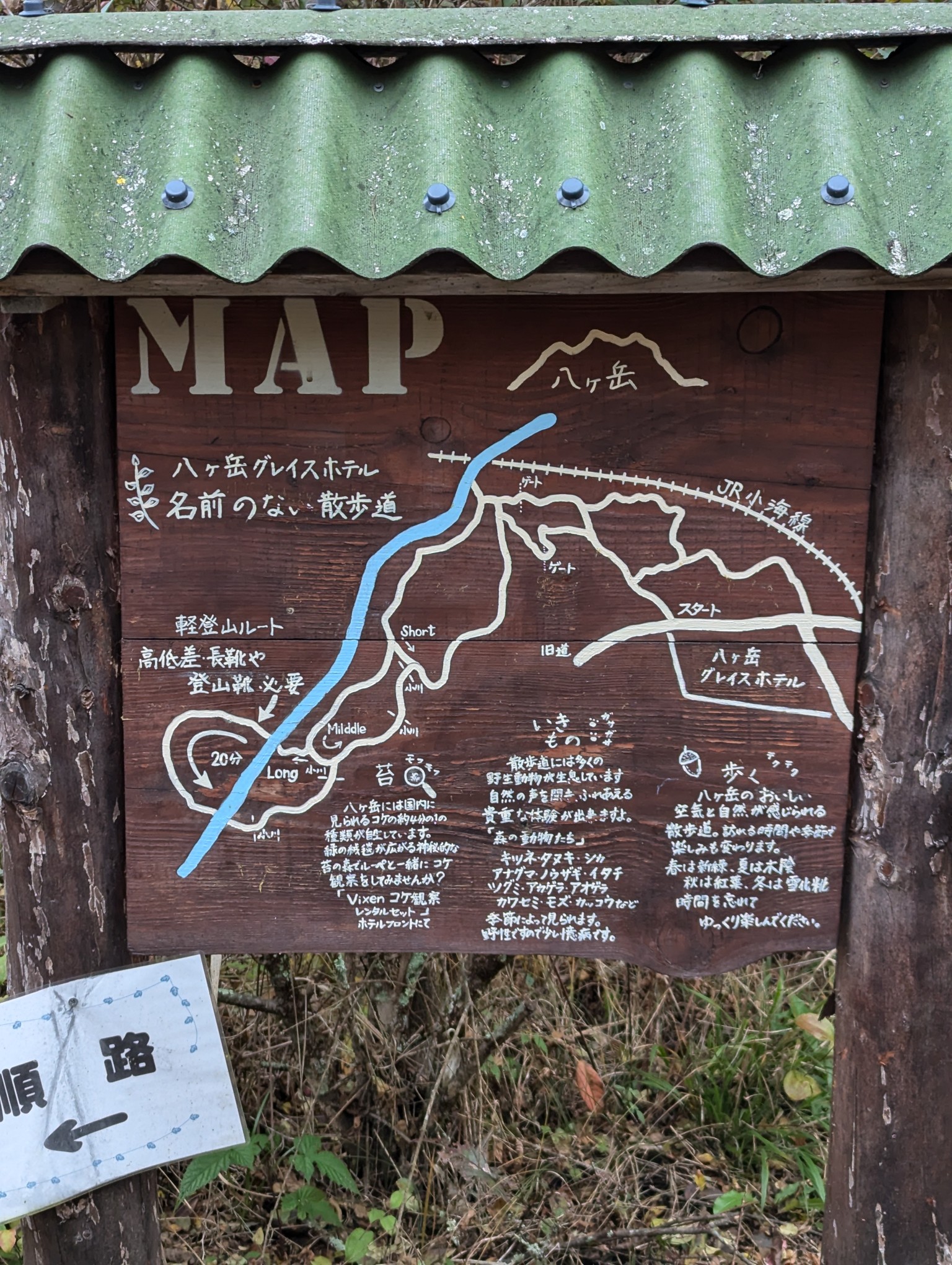 4日目。今週の天気予報、毎日変わるんですよ。お天気不安定。今日は曇りでギリギリ雨が降らなさそうか、降っても夕方遅く…の予報。今夜泊まるホテルの送迎バスが茅野駅を午後発なので、午前中に清里へ寄ってから茅野に向かおうかと思います。早朝、周囲にホテルお手製お散歩コースがあるので散歩しました。この川が県境みたいなので、川の向こうは山梨県。八ヶ岳は今日は見えないです。お散歩の後は朝ご飯。野菜が美味しい。曇ったり晴れたり、たまに顔出す八ヶ岳。ホテルの送迎バスで清里駅まで送ってもらいました。駅のロッカーが新しくなって増設されてました。サンメドウズ清里(清里テラス)に行きたいけど、レンタサイクルにするか、周遊バスにするか…とも思ったけれど、時間少ないしからタクシー使う。ちょうどタクシーいたし、サンメドウズまで1500円位らしいので。タクシースキップした結果、オープン間もない人が少ない時間に到着。リフト券を買って清里テラスに上がります。到着。ソファー空いてる♪折角なので、ソファーに座ってみる。お天気が良ければ絶景なのだが、視界ゼロよりはマシ。いっそのこと雲が下がりまくってたら雲海かもしれぬ…そう上手くはいかない。もう1つ上にテラスがあるので登ってみます。時々、雲の隙間から富士山の一部がチラ見えするんですよ。山頂見えないかな~、ちょっと待ってみるかな~一緒に雲の切れ間待ちしていた団体旅行のマダムとお喋りしながら楽しく待つ事10分。出たー!思わず周囲とか、後ろの休憩所に座ってた方々に、富士山出てますよ~見えますよ~ってお声掛けしてしまった。皆さん、ホント?ホント?ホントだー!って喜んで出てこられたわ。こういう時に謎の一体感が出るの好き。富士山が見えて満足したので撤退。他にも鐘やテラス席があります。清里テラスは団体旅行でも人気観光地だし、来る機会はまたありそう。サンメドウズ清里の後はお散歩がてら歩いて清泉寮を目指す事にしました。一応タクシーの連絡先も聞いたし周遊バスもあるけれども、歩いても40分くらいで着くはずなので。ひたすら下り坂です。15分で美し森に到着。前に清里に来た時に、ここまではレンタサイクルで来たので、この先の道は知ってる。更に下って、現れた交差点を右。この先にちょっとだけ登り坂があるけど、それ以外は下り坂。清泉寮のガイダンスのとこを左折。後は真っ直ぐ。清泉寮に到着。前はここに泊まったな~、景色綺麗だったな~ここもハロウィン仕様。このまま清里駅に向かって歩きます。以前の記憶通りなら30分位で着くはず。ファームショップのところに牛が出てました。引退したジャージー牛だそうです。ここに来るとソフトクリームが食べたいところですが、その時間は無さそうなので断念。以前、駅前にあったピクニックバスの場所が変わってますね。駅近くのショップ前にいます。駅に戻って来ました。電車の30分前、いい時間。清里駅から小淵沢駅へ移動。乗り継ぎまで時間があるので一旦、小淵沢の改札を出ます。小淵沢の有人改札は無人駅から乗車した人の精算で長蛇の列。清里はICカードが使えるので、ICで乗ってて正解でした。小淵沢駅の屋上が展望スペースになってます。南アルプスが見えます。東側に富士山も見えるようですが、雲が厚くて滞在中には顔出しませんでした。再びJRで小淵沢から茅野に移動。いつか御柱祭を見てみたいんだけど、GW中なんだよね~仕事柄、人が休んでいる時に働いて、人が働いてる時に休むスタイルなんで…閑散期に安く旅行できるので個人的には超助かるスタイルではありますが、イベントには無縁。引退後の楽しみですかね。茅野駅からホテルの送迎バスに乗ります。今日の宿泊先は「アンビエント蓼科」さんです。女神湖と御泉水自然園に行きたかったんですよ。公共交通機関では行くのが難しい場所は、近くの送迎有りホテルに泊まるという奥の手を使用。女神湖は白樺湖より更に奥です。佐久の西隣の立科町まで北上してるので、今回は八ヶ岳を北から時計回りに一周した感じ。↓翌日撮ったので雨降ってますが、まだ降ってないです。小さく見えますが、フロント層が高い位置にあって一段下がった場所にホテル層があります。裏から見るとこんな感じ。フロントから見える女神湖と紅葉良い。この辺はもう紅葉のピークが過ぎたくらいのようです。後ほど聞いた話では、いつもなら赤色は散って黄色だけが残ってるくらいだけど、今年は紅葉が遅かったのでまだ赤が散ってない、と。お部屋です。シックで落ち着く色合い。とりあえず雨が降る前に散歩しよう。女神湖を1周してきます。そうそう、この映像を去年観たんですよ。駒ヶ根に行ってた時に長野のローカルニュースで、女神湖が紅葉の見頃です。って。そして、よし、来年はあそこだ!って。女神湖は人造湖なので形が整っていて、ほぼ楕円形です。雨がぽつぽつし出したので撤収。部屋でのんびりした後は晩ご飯です