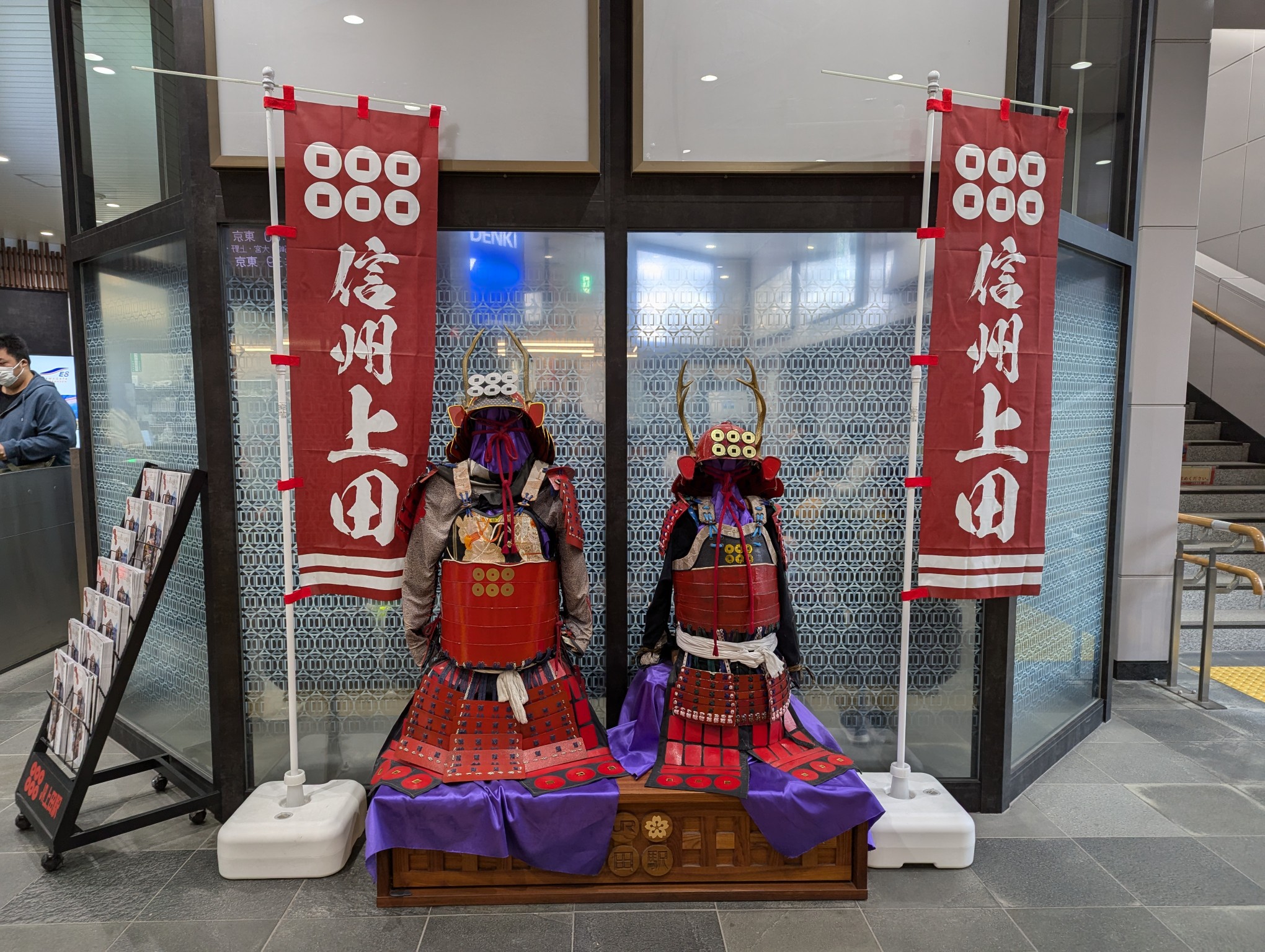 今回は長野県の東部(ちょっと山梨)に4泊5日です。上田駅からスタート。夜行バスで来たので早朝到着でしたが、午前中は野暮用だったので、旅行としては昼から書きます。上田駅の信濃鉄道の待合室。影絵作家の藤城清治さんの影絵があります。鏡にも映って、奥行きがあるように見えます。お昼ご飯は駅にある蕎麦屋「ちくまがわ」さんで、山菜なめこおろし蕎麦。今日は別所温泉に泊まるので、上田電鉄別所線を途中下車しつつ向かいます。スーツケースは事前に宿に送ったので手ぶらです。上田電鉄の上田駅。下之郷駅で下車。近くにある「生島足島神社」を参拝します。駅から5分ほどで到着します。コンパクトだけど素敵な神社ですね。御朱印をいただきました。再び別所線。途中の八木沢駅が素敵だったのが気になる。時間があったら行こう。終点の別所温泉駅で下車。レトロで素敵な駅じゃないですか!テンション上がります。温泉も楽しみ。宿に行く前に、温泉街を観光します。まずは北向観音。本当は北向観音を参拝してから善光寺に行くのが正解らしいのですが、今回は善光寺には行きません。昨年の元善光寺といいバラバラの参拝です。江戸時代に江戸から善光寺に向かう時には、ルートだし温泉街だし良かったんでしょうね。仁王像が門じゃない上に、後ろが崖って珍しいのでは?お寺が高台にあるんですよ。塩田平が見渡せる。その端っこに仁王像がいらっしゃる。お天気が良ければ、もっと景色が良かったろうに。この天気で雨が降ってないだけラッキーなんだけどね。続いて「安楽寺」。安楽寺には国宝の「八角三重塔」があります。木造の八角三重塔は国内唯一なんだとか。ここで雨が降り始めました。しかも結構激しい…次は「常楽寺」です。さらに高台に登ります。きっと晴れてたら景色が良いところpart2。そして常楽寺に到着。雨が酷くなってきたから急ごう。常楽寺の手前に別所神社の入口があります。もうちょっと登って「別所神社」に到着。神楽殿は、きっと晴れてたら景色が良いところpart3。晴れてなくても良い景色だけど。観光も終わったので、急いでホテルへ。今日のお宿は「上松や」さんです。お部屋です。外は温泉街が見える感じですね。館内は真田推しです。そういえば、真田幸村コンセプトの部屋もあるみたいですよ。晩ご飯です。食事中に幸村の甲冑を着た支配人さんがご挨拶に回られます。とても面白い方でした(笑)今日はここまで。