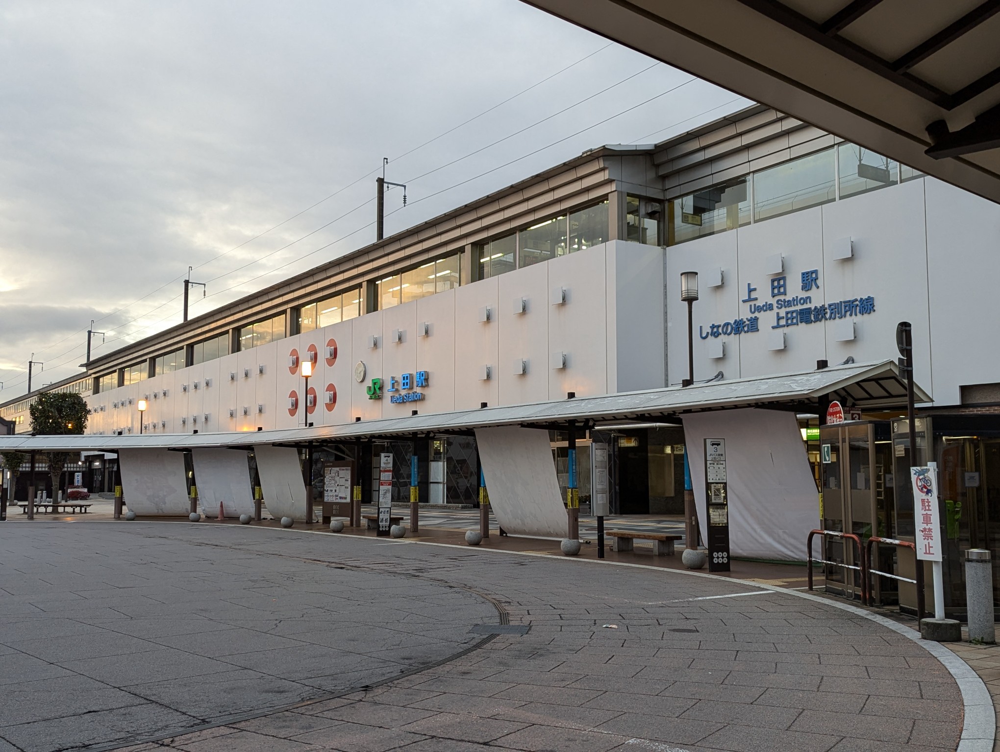 2日目です。曇ってはいますが雨は上がったみたいです。とりあえず朝食。旅行中は乗り継ぎ等の都合で昼ご飯を抜く確率が高いので朝ご飯はもりもり食べます。出発まで時間があるので、朝から北向観音をお詣りしました。チェックアウト後は別所温泉駅から上田電鉄に乗車。上田に戻ります。今日は先ず、小諸城跡に向かいます。今晩は上田駅の近くに泊まるので、上田駅のコインロッカーに荷物預けてから、しなの鉄道に乗り継ぎです。上田駅→小諸駅に移動。駅の横にある陸橋を渡れば、小諸城跡(懐古園)にはすぐ着きます。小諸城跡は紅葉の名所、そしてもみじ祭り開催中なのですが…まだまだ、ですね。今年はなかなか気温が下がらなかったので、かな~り紅葉遅れてるので。自然現象ばかりは仕方ないですね。有名な紅葉谷も、まだまだ青葉。紅葉は見られなくて残念だけど、折角なので一通り見学しますよ。懐古神社に~小諸城跡の石垣に~富士見台に~富士見台って言うくらいだから、条件が合えば富士山が見えるのかな?天気は回復したとはいえ、雲が多いので今日は無理ですね。この後、元々は人気のお蕎麦屋に行く予定にしてたんですが、上田駅でゲットしたパンフレットで見つけた「海野宿」。テレビで見た事ある…そういえば上田の近くだった…折角だから行きたいな…って事で、急遽、海野宿に行く事にしました。昼ご飯は抜き!が決定です。小諸駅から、しなの鉄道で上田方面へ。田中駅で降ります。海野宿は、東御市の田中駅と上田市の大屋駅の中間にあります。どちらから歩いても海野宿の端まで15分程度。田中駅→海野宿→大屋駅というルートで通り抜けで行きます。ちょっと解りづらかったけどサイクリングルートで海野宿までのガイダンスが出てました。まぁ、線路から離れなければたどり着けるんで…海野宿に到着しました。田中駅側の入口に白鳥神社があります。ここの御朱印、色んな種類、しかも可愛い見開きのやつが沢山ありました。厳選して2種類をいただきました。近くに住んでれば毎月通って集めるのに…入口の白鳥神社に捕まりましたが、海野宿内に進みます。開放感のある、ゆったりした宿場町ですね。お店はあまり多くないのかな。開いてるところは少ないです。平日だからかもしれないけど。通り抜けました。このまま大屋駅に向かいます。ほぼ真っ直ぐ15分程度で着きます。電車で上田駅に戻ります。上田市内を廻ります。昼ご飯食べる時間あるんじゃ?って思うかもしれませんが、時間があれば行きたい所が増えたので、このまま突き進みます。八木沢駅に行きたーい!日没までに行きたーい!こういう好き勝手が出来るのが一人旅良いところ。まず上田城跡。天守は残ってないので、この城門と真田神社に行くくらいですね。大兜と…テレビで見るやつ~絵馬の中をくぐるというのも不思議な感じです。他人の願い事すら映えにするというか。こういうのは気にしたらダメですね。楽しんだもの勝ち。それから真田神社。その奥には撮影スポット。上田城跡の後は歩いて15分くらいかな?柳町へ行きます。ちょっとだけ、昔の姿が残ってるところ。海野宿に行った後なので、これだけかーというのが正直な感想ですが、日本酒好きには信州亀齢のお酒を買う!という重大な使命が。大変人気らしく、買える本数制限もあり、そもそも在庫があるのが生酒1種と火入れしたのが1種の2種類だけ。帰宅するまで数日あるので生(クール)は無理なので、火入れされたやつを購入。帰るまでのお預けだ~上田駅に戻ったのが16時。昨日、上田電鉄の車窓から見て気になっていた場所…日没までにたどり着ける!行ける!再び上田電鉄別所線に乗車。行き先は八木沢駅です。無人駅ですが、色々な媒体の撮影地として使われてるらしい人気スポット。可愛らしい青い駅舎と花壇の花と広い塩田原。素敵な場所的です。電車は1時間に2本くらい止まります。ただ周囲にはお手洗いも店も何もないので、そこだけ要注意です。天気が良ければ、お隣の別所温泉駅のレンタサイクルで来ても良いかもね!以上、私が調べた内容のメモでした。上田駅に戻ってホテルにチェックイン。今日はビジネスホテルの「上田プラザホテル」です。晩ご飯は上田電鉄の改札横にある居酒屋「やきとり番長」。馬肉が大好物なので、熊本、長野中部~南部、福島の会津に行ったら馬肉食べたいよね。って思うのです。上田は美味タレ(おいタレ)の鶏料理が有名らしいので、鶏串セットと美味タレ。ここはチョイ飲みで終えて、もう1件。気になっていたお店へ。駅前にある「天神ブルワリー」。地ビールのお店です。飲み比べ3種類と、味噌漬け盛り合わせ&信州チーズ3種です。美味しかったけど、ちと頼み過ぎました。味噌漬けにもチーズいるので、チーズ多過ぎでした。失敗。夜はまだ長い。上田城跡でライトアップしてるらしんですよ、紅葉シーズンなので。(紅葉してないけど)なので、また上田城跡に行ってみました。昼間は気付か