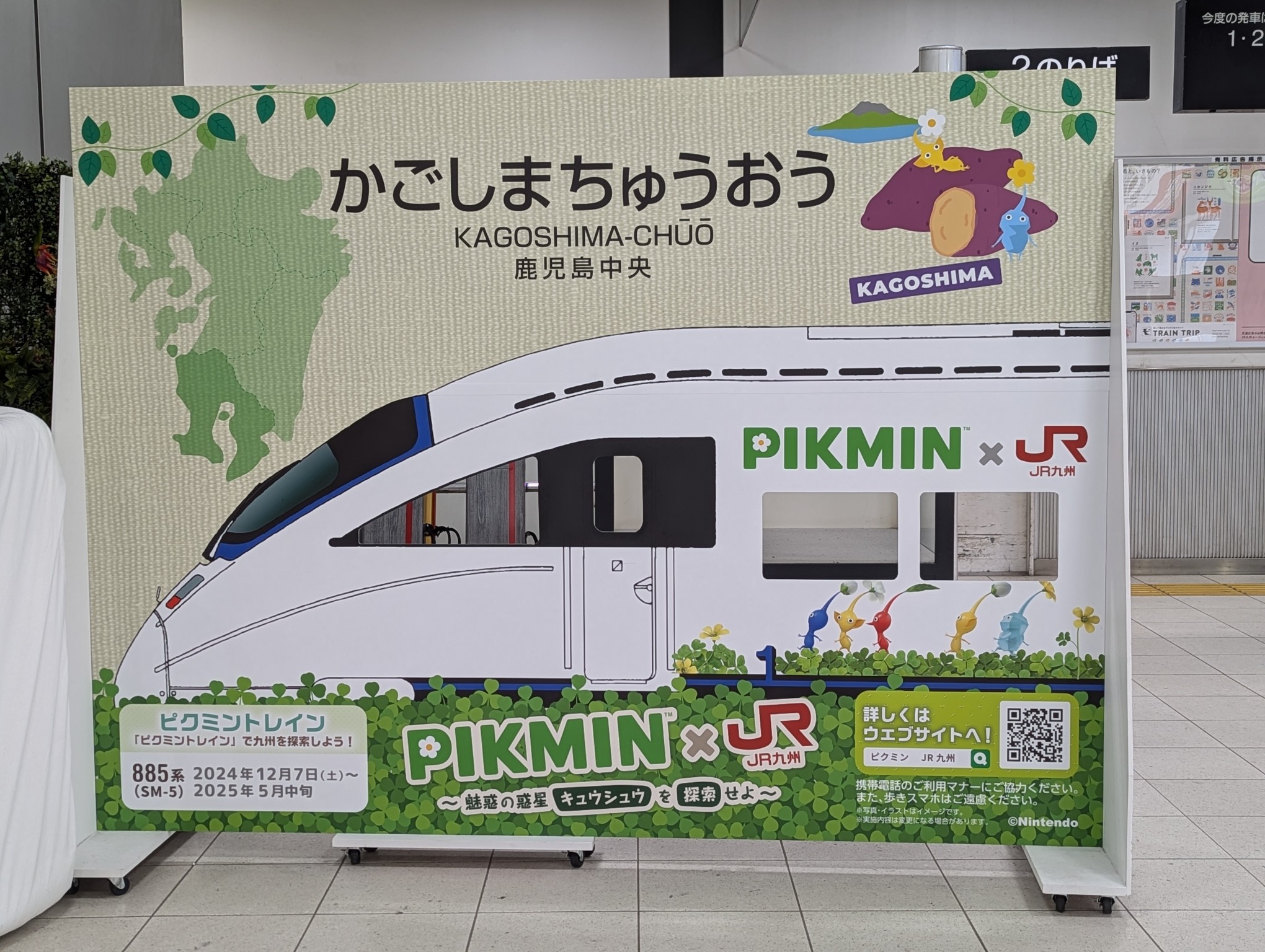 4泊5日で鹿児島県に行きました。鹿児島市と指宿市、ちょっとだけ霧島神宮です。1日目の目的地は霧島神宮。鹿児島中央駅からスタート。ちょうどピクミンとJR九州のコラボ中でした。(私はピクミンブルームというお散歩ゲームをしております。)コラボグッズの販売は旅行が終わった後からだったのは残念です。特急きりしまで霧島神宮駅に向かいます。桜島を見ようと海側の咳を取ったんですが、今日はお天気が悪いです。霧島神宮駅に着きました。少し前に新しくなったらしいですが、霧島神宮をイメージした感じでしょうか。木を多く使ったお洒落な駅です。ホームに向かう通路は、鳥居のようにになってます。駅前からバスで霧島神宮へ向かいます。霧島神宮前バス停で下車。バス停の先に入口があります。本殿はまだ先みたいですね。大人数こなせる効率的な手水所です。余所の神社だと日本酒が並ぶであろうところが焼酎!さすが鹿児島!実は芋焼酎は飲んだとこが無いので、今回どこかで飲んでみようと思ってます。もうすぐ本殿です。霧島神宮に到着!今回も良い旅になりますように。帰りのバスまで時間があるので、バスロータリーの前にある蒸気屋さんでお買い物。蒸気屋さんと言えば人気の鹿児島土産「かすたどん」。会社のお土産にかすたどんを所望されたので買って帰らねばならぬのですが、賞味期限が短いので今買う訳にはいかぬ。帰る日に買います。小腹が減ったら食べようと、単品を色々と購入。とりあえず、まだ温かい焼きドーナツをパクリ。バスで霧島神宮駅、特急で鹿児島中央駅に戻ります。雨がち降ったり止んだりの不安定な天気ですが、そのおかげで特急から虹が見えました。幸先良いです。きっと良いです。今日のホテルは駅の近くホテルユニオン。1階に黒豚の店が入ってる。そしてそのお店の定食付きの2食付き7000円くらいのお得感。お安いので期待してなかったのに、超美味しい。しかも飲み物1杯引き換えチケット付き。私が頼んだのはロースかつ180gの定食。数種類の定食から選べますよ。チェックインの時に晩ご飯の時間を聞かれて予約しくれてたからすぐ入れたけど、一般のお客さんも予約でいっぱい、予約してない人たちが並んで待ってる。地元の方々に人気のお店じゃないですか。ホテルは古いけどお部屋は綺麗です。ホテルユニオンの2食付き、超オススメです!次に鹿児島来るときも、ここ泊まろう。
