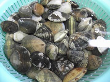 実家からた~くさん、”あさり”をもらった毎年この時期になると、蒲郡に住んでいる伯父が潮干狩りをして、沢山のアサリを実家に送ってくれるこの画像はもらった半分。砂抜きして、よく擦り洗って、酒蒸しとお吸い物にしました。酒蒸しは、唐辛子と酒を入れて蒸しただけけっこうな塩ッ気で、味付けなんていらなかった。お吸い物は昆布ダシ2g程度と、塩少々だけ。美味しかった