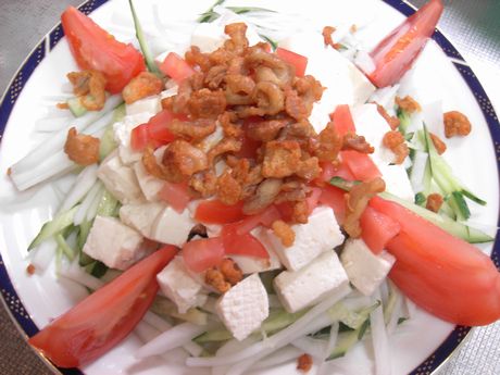 4/26に作った「レンジで簡単!巻き巻きチキン」の時に剥いで冷凍して置いた”鶏皮”コレをカリカリに焼いてサラダにトッピングでも、鶏皮って凄いカロリー100gで、513カロリーもあるのだっだから一生懸命脂除去すっごい量の脂が~~っ!!取れましたヨ。材料:3~4人分トリ皮 70g木綿豆腐1丁(200g)トマト(小)1個(100g)きゅうり1本(80g)大根10cm(400g)この量だと605カロリー脂をマメに除去したので100~150カロリーは減ったと思う。この”アブラトル”はダイソーで売ってるんだけど、熱に強くて丈夫なので重宝してるドレッシングはノンオイルのゴマをかけました。