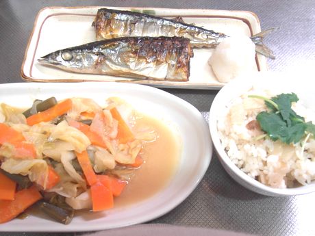 月曜からまたまた『ヨシケイ』をはじめた暑くなって来て、材料の計量や献立を考えてカロリー計算する事が大変になったから入院前も仕事の日は『ヨシケイ』と『タイヘイ』を併用してたけど、価格とボリュームの点で今回は『ヨシケイ』一本で行く事にした。カロリーはマチマチだけど、その分朝と昼で調整すればイイ5/29のヨシケイ★たけのこご飯★秋刀魚の塩焼き★キャベツの味噌煮3点で427カロリー大根おろしに「醤油」を大さじ1程かけたので、プラス13カロリーかな。で、コレに「きゅうりの即席漬け」と「海草汁」を付け足した。きゅうりの即席漬け材料2人分/1人16.5カロリーきゅうり 2本塩昆布 10g塩 1g★きゅうりを輪切りにして塩でモミモミ。★水気を絞って、塩昆布と和える。海草汁材料2人分/1人9.5カロリー海草ミックス 4g顆粒ダシ 2g醤油 小さじ2水 300cc★煮立った湯にダシと戻した海草ミックスと醤油を入れるだけ。”みつば”はタケノコご飯のヤツをチョコッと拝借全部でこんな感じ♪427カロリー+13カロリー+16.5カロリー+9.5カロリー││466カロリーでも実際はもっと低い!ご飯もカロリーに含まれてるけど、私は100gだし、砂糖はエリスリム使ってるから。塩分はちっと多く摂取してしまった やっぱ、楽献立考える事無いし、食材はきちんと、別紙に生産地が記載され同梱されてくる。何が一番楽チンかと言うと、計量の手間と細かいカロリー計算が省けたこと汁物なんかは付け足すだろうけど、毎日料理が楽しみだ