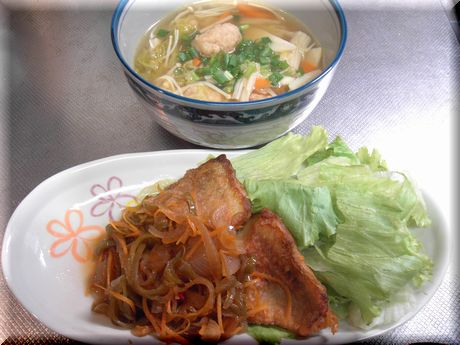 5/31ヨシケイの2品★赤魚の南蛮漬け★五目スープ(肉団子沢山♪)材料と作り方計386カロリー 今日、付け足したのは「お浸し」1人分/37カロリーほうれんそう (ゆで)80gかつおぶし 2g醤油 大さじ1/2これにご飯100g/168カロリー今夜の摂取カロリーは386+37+168││591カロリーでした「南蛮漬け」美味しかった~色んな料理が覚えられて得した感じだわ
