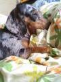 昨夜ブログの更新をするために、23時頃からpcに向かって頑張っていたんだけど、終了した時間がAM03:20!!書込み送信~クリックしたら、『3:00~4:30メンテナンス中』全部消えちゃったのアタシの4時間が全部パーやる気が失せてしまいました気を取り直して再更新5/5はとっても暑かったあついぶぅ~~~っ凄いブス顔~(笑)父ちゃんにイタズラされちゃったんだけど、あまりの暑さで抵抗する気力も無いらしい…窓全開!夕方でこの室温ですからね~日中は室温30度越えたでしょうね体調不良の上にこの暑さ…もう、バテバテで汗びっしょり。プレドニン服用日だったので、更に発汗かりんもハァハァベロ出して、水ばっかり飲んでグッタリしてました。アタシもグッタリ寝豚状態…ブヒでも、明日は雨らしいのでリビングの模様替えだけはやってしまおう!ということになりました。といっても、殆ど相棒がやってくれたんだけど夏用ラグマットをベランダに干して、冬用のマットとホットカーペットに掃除機かけて、ホットカーペットは畳んでロフトにしまってくれたよんでも、寝豚のアタシだって、少しは手伝いましたよ~ファブリーズをシュッシュッシュッ(笑)腰が痛い相棒のために、コタツとテーブル運びの応援ソッレ~ソッレ~流石にこの木のテーブルは重いので、運ぶの手伝いましたスッキリグッタリかりんと一緒にまた寝豚相棒が扇風機もロフトから出してくれて、拭き掃除までしてくれて、グッタリ寝ている私達に微風を送ってくれました~快適×2相棒よ、ありがとう~ AM3:00、室温23度明日は雨で涼しいらしいどこかへ出かけたいな