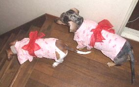 暦の上では秋ですが、今日明日と近所の公園で夏祭りです。今日は何ヶ月ぶりかな?エアコン起動せず過ごせるほど涼しかったんで、ウチのワンコ達にも浴衣を着せてお祭りへGO父ちゃん、母ちゃん、階段降りれないよーーーー早く1階まで抱っこしておくれーーーあれ?いつもと違う道ですねぇ?なんか騒々しい所に着きましたももチビッコもたーくさん居ます。クンクン。初めまして(れもん)コッチに来るなーーー(かりん)父ちゃんそのブツを早くくだしゃいかりん姉ちゃんズルイぞちきしょーーーーーーっ御見舞い喰らわしてやるわよっ 短足パーーーーーーンチッ見事な短足パンチに驚きました拡大してみたこのパンチで肉を見事にゲットし、満足気な顔のレモン…相棒はちゃんと順番にフランクフルトをあげてたのになぁ可哀相なかりんちゃん...ヾ(^-^;)ヨシヨシかりん、しょぼくれちまった 大奥より凄まじい女の戦いであります