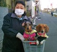 アタシのチャリ、’97年製手入れも何もしてないので、サビサビのボロボロでーす。でもまだまだ乗れるさ 5年と数か月前に母が新車(チャリ)を買った。まだ私も再発する前で元気に働いていて、仕事帰りに寄った時は、買い換える前のチャリに乗って帰る事が多く、そのうち乗って来ちゃったままになり、Myチャリ化したのだ家族内チャリドロ?笑) かりん1匹だった時は、チャリンコを引きながらお散歩して、お買い物して荷車代わりにしたり、疲れたら かりんをカゴに入れて乗って帰ってきたりと、結構使ってたんだけど、昨年れもんが加わってからはほとんどに乗らなくなっちゃった。 この間、久しぶりにチャリを使おうとしたら、タイヤ前後共にペッチャンコ先週だったかな? 夜、チャリンコを引っ張って散歩がてらスーパーへ、水の専用ボトルを持ってお水を入れに行く事になり、相棒がチャリンコに空気を入れてくれたしかーーし、後タイヤに空気入らず…要修理で、今日「自転車屋さん」まで行った。左手にかりん&れもんのリード、右手にチャリ。チャリはパンクしてるから、ガタゴトガタゴト。自転車お散歩に不慣れなれもんは、真っ直ぐ歩かず…リードが足に絡まって、アタシャ2度もコケたわよれもんはほーーんとチョロ助ですヨ自転車屋さんでも、じっとしてないれもんでした。 前置き長ーーーーーくなったけど、やっと本題へ(笑)後ろタイヤはチューブが癒着しちゃってて、穴開いてました。前カゴももう留め金が劣化しちゃって、現状のパーツでは修理不能。あと、ライトも点かないしベルも鳴らないしカギも抜けない(爆笑)右ブレーキのワイヤーも破損。フォーク?も歪んでるそうで…買った方が安いんじゃないかいくら掛かるのかな~って不安に思ったけど、良心的な店って昔から有名だし、買った方が安いんだったら(中古車含めて)言ってくれるだろうから、中古車の値段までは高くないんだろうなってことで修理続行修理の途中、母がチャリンコで自転車屋さんの前を偶然通ったすげーービックリ声を掛けたら止まってくれて、かりん&れもんは大はしゃぎチャッカリ後ろカゴに乗せてもらって、ご満悦の2ワンですババチャマと記念撮影自転車屋さんの動きや音に興味深々駅前の線路沿いなので、がたくさん来ます。快速電車にビックリ修理が終って、お代を…な・な・な・なんとこれだけ直してくれて1400円だって~~カゴもベルもライトも中古だけど、Myチャリ若返ったぜ~~最後に自転車屋さん、MYチャリ試運転「乗り心地悪いなぁ~」と言って、また色々直してくれたよ(タダで)儲けはあるのか再試運転して出ました さすがです!乗ったら軽いのなんのって すっかり日も暮れ、ライト点灯八百屋さんでお買い物をして、母と途中まで一緒に帰りました。母と別れてから、初の2ワン乗せ運転かりんは窮屈そうでしたが、初めて前カゴに乗ったれもんは楽しそうでした。中古カゴとはいっても部品は新品。安定感もあって、快調で~す途中、ババちゃまが居なくなって「キュンキュン」鳴いて暴れていた2ワンですが、偶然バッタリとババちゃまに会え、遊んで貰えて楽しかったんじゃないかなチャリンコも、整備されて喜んでいることでしょうまだまだ乗れるぞ~