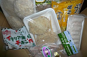 昨日餃子がたくさん届いたというのに、今日は今日とて、食べ物がたくさん届きました。ああ、取り置きするの忘れてた~( ̄▽ ̄)ノ『決算大謎袋2』☆ミルフィーユ・カツ☆イタリア風チキンカツ☆レバーフライ☆カレーチャーハン☆ネット巻き☆和風ウインナー☆ソフトサラミ以上7点。これならば2000円ってのもお得なのではないかと。人気のないレバーフライですが、届いてすぐに食べちゃいました。味はまあまあ(単品買いはしないだろうけど)ソフトサラミはたっぷり薄切りのサラミが入っててよいのだけど、いかんせん、大袋にどかっと入ってて、しかも偏った塊のまま入っていたので、冷凍庫の隙間がない中、入れるのに苦労しました。もっと平らに入れてから冷凍して欲しかったな。で、送料無料対策のために同梱福袋も購入。今月は、決算期だからってことで内容もお値段もUP★内容はというと…。☆エビフライ☆とろっとオムレツ☆イタリア風チキンカツ☆和風ソーセージ☆カレーチャーハン□あと、単品で買った、にらまんじゅう普段は3品で1980円だけど、今回はさらに二品ついて2500円。お値段据え置きのままならお得度upなんだけど(^-^;)送料対策のために同梱福袋を買った割りには、同梱袋の方が価格が高いってどういうことだ(笑)ま、全部ひっくるめて4500円ほどなので、まあまあな買い物ではなかったかと思うけど。これでしばらく、冷凍食品は買えないわ>パンパンなので(^-^;)