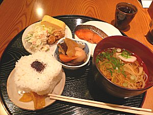 本日、奈良までお出かけした際に、近鉄奈良駅の構内の気になるお店があったので、念願のそこでランチすることにしました。切符売り場の隣の「蔵元 豊祝」ってのが目的地♪オモテの看板を見ると…本日のメニューは鳥の唐揚げ・ポテトサラダ、出汁巻きたまごにゅうめん・焼きしゃけ・型ぬきごはん・煮しめ…だそうで。昼はコレだけのメニューらしくて黙って座ればコレが出てくるらしい。今日の昼飯はこんな感じすごいボリュームです( ̄▽ ̄)ノキャッポー♪昼はこのメニューしかないようですが、この内容なら満足でしょー。鮭も一切れがものすごく大きかったし、煮しめも、オカンのあじ風。これで700円也!食べて損はありません。昼時に近鉄奈良駅を通る方は是非食べてみて下さい(^^)