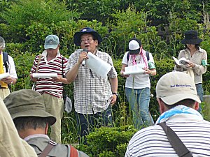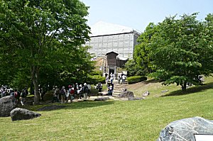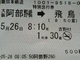 飛鳥保存財団と奈良大との連携企画による『飛鳥まるごとリレーウォーク』に参加してきました。近鉄の飛鳥駅から、「あすか」周辺を歩き倒して、あちこち名所を巡りながら、水野正好名誉教授&白石太一郎教授&上野誠教授の話を聞くというエラク豪華な企画。奈良を離れてすぐのことだったので、『ホームシック』も手伝ってか「絶対行く!」状態。阿部野橋経由で飛鳥へいくことにしました。土地鑑はあるけど、近鉄南大阪線に乗ったことが少なくて、発車時刻がよくわからんかったので直接阿部野橋駅に行ってみたら、吉野線に乗り入れる直接の電車は「特急」しかないことが判明。ぎゃーと思いつつ、5分後には特急が出ることが判ったので、慌てて特急券を購入しつつ、自分の席へ。その前に、記念撮影です。 滅多に近鉄特急なんて乗らないしね途中、大和八木で私の前の席に上野誠センセが座っておられるのに気がつきまして(!)なんちゅう偶然。知らぬこととはいいながら、後ろでバナナなんて食べてましたことよ(汗)そんなこんなで、なんとか8時50分、スタートギリギリには間に合いました。受付を済まそうとするなり、奈良大のおともだちとも続々遭遇。誰でも参加できる催しでしたが、奈良大でも告知されていた行事なので、もしかして、参加した人の殆んど奈良大関係者?(笑)そして、9時にウォークラリー開始です。ざっと見て300名ほどの参加者。(予約申込制だったけど、当日参加もOKだったらしい)まずは岩屋山古墳目指して民族大移動。大学の野外スクーリングでも、これだけのメンバーがいるとかなりの大所帯で、タイヘンだよなあと思っていましたが。歩き出すと、もっとタイヘン。列の長さがどんどん伸びます。奈良大の『学生』さんはそれでも健脚揃いで、こんな坂登るのかよ?!ってところでもひょいひょいついてゆかれる方々。長距離歩行には自信のある私でも、暑さには勝てず(冬生まれゆえ?)冷えピタ貼ったりしてしのぎましたが。それでもこの日は暑かった。岩屋山古墳に到着して見学。昨日雨が降った結果、土がぐちょぐちょで、古墳内部に入ったのだけど、大きな水溜りが出来ていてまたぐのが大変。ほとんどの人がその中に入って見たり、古墳の頂上に登ったりするものだから、見学時間が延び延びです。大人数での見学はタイヘンだよさて、そそくさと次の見学地へ。次はマルコ山古墳。スクーリング時とは違って、歩きながらセンセの話があるわけではないので、それぞれこじんまりと固まりつつ、次の見学地を目指します。説明の場所にたどり着くとすでに説明が始まっていたり、大多数の人が集まるのを待つ為に、時間のロスがあったり。やっぱ、ここは、ホレ、あれですよアレ。奈良大学外授業名物「FMラジオで講師の声飛ばし」奈良大の学外スクーリングでは、スクーリングで教授の声をたくさんの人が一度に聞けるために、音声をFMラジオを使っていたのですが、あれはやっぱり絶大な威力を発揮するものなんだと今では認めています。民家ウォッチングも楽しからずやつつじが盛り飛鳥は村中はよく歩き回った(自転車で回った)けど、西側の古墳がゴロゴロ(?)してる地域は全然回ったことがなかったので、今回訪れたところは全部お初なところばかり。その点、初心者です。自分だけで巡ったら、ちょっと寂しいような場所も、これだけの人数で回ったら、町内の人たちにとっては迷惑な存在(笑)綺麗な饅頭型のマルコ山古墳かなり登り坂もあって、大変でございますが、ここに住んでいる人もいるわけだから、普段から体力づくり?ってなもんかな。途中ショートカットで通り抜けた高取町役場の一角には、天誅組鳥ケ峰古戦場の碑も建っていて、ここが歴史の舞台だったことを思い知らされます。古戦場の碑取り残された蔵の一部しかし、ここらへんってホント山の一角なんだよな~という場所で、まだ5月とはいえ、日差しは厳しいし、すでにお疲れ状態な人も多数。束明神古墳は階段を登った山の上ですので、古墳の一角にたてられた神社では、しばし休憩をとる人も多数。もちろん私も水分補給をしつつ、がんばります。一休みの方続出奉納された古墳を描いた絵つぎは岡宮天皇陵(草壁皇子の墓)と現在はされてる古墳へ。確かに古墳です・誰の墓かは判らんけど(笑)古墳から東を望むここで吉野線の壺阪山に出ました。あらあら、いつの間にか一駅も歩いてきたわけですね。壺阪山駅から、壷坂寺は、バスで行けるのですが、かなり遠い。我々が歩いてきた時、ちょうど、壷坂寺行きの小さなバスが発車したところでした。特急も通るというのに単線な吉野線次に目指すは、キトラ古墳。ここらへん、本当に来たことがないんだなあ。初めての光景ばかりで、どこを見てもきょろきょろ。次はキトラ古墳だよね?って思いつつ、どこが古墳?状態なところに出くわしましたが。建築事務所か工事現場かと思わせる建物ですが…ここがキトラ古墳なのです(苦笑)看板など見ないで通り過