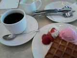 昨日の今日ではありますが、本日は旧宅(っていう程のものじゃない)まで掃除をしに外出。んじゃ、あそこでご飯しよう!と心に決めてたのは、近鉄百貨店生駒店三階のCafe La Costa.ここができて十周年だけど、今まで一度も入ったことなし。表玄関から窓際のテーブルが見えていて、いつかは入ろうと思っていて今日まできてしまっから…。ランチもあったけど、甘いものたべたかったので、ワッフルセット。 見本よりちょっと貧相だったけど(笑)単品で頼んだ方がよかったかな?最近忙しすぎて、あまり食欲がないんだけど、一度たべはじめれば結構食える(笑)ランチだか、おやつだかわからん昼飯だったけど、久しぶりに座ってもの食べた~☆(て、昨日の夜も座ってご飯食べたな、ベッドの端で(!))