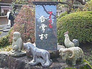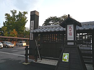 先週の土曜日は法事でダンナの実家に帰っておりました。その時の法話で、「岡本一平さんの家の話」というのがありまして。岡本一平さんといえば、ピンと来る方もみえるでしょう。大昔はこちらの名前に反応が出来る方も多かったでしょうが、今となっては、岡本かの子のダンナ、もしくは、岡本太郎@太陽の塔の作者の父といった方が通りがよいかと。その岡本一平さんが第二次世界大戦時に岐阜県白川村に疎開していたんだそうな。そろそろ関東へ帰ろうと思って交通の便がよい、美濃の太田宿あたりへ引っ越して、そこで生涯を終えたというのを初めて聞きました。その当時住んでいた居宅の古材を使って、当時の住居を再現した日本家屋が出来たんだよという話を聞いたので、法要が終了してから早速それを見学に行ってきました。★そういえば、なんか作っていたなあ~とは思っていたけど、なにやら旧中山道の中に新しい施設が出来ておりました。太田宿中山道会館の入り口です入り口から一番奥にまだ外見が新しい日本家屋。これが、岡本一平さんが住んでいた住居を復元した『糸遊庵』だそうで。中は見学できるということで上がってきました。一階は今期、盆栽の展示をしておりまして、二階は一平さんの仕事部屋を復元してあります。一平さんの仕事場の再現ここで締め切りの仕事を終え、夜中に一杯冷酒をひっかけて、風呂に入っているときに脳卒中で亡くなったそうで。死因の一因・一升瓶美濃加茂っていえば、坪内逍遥とか思っていたけど。岡本一平さんがここで亡くなったってのは知らなかったわ。(もともとそんなに知っている人でもなかったし)いや~坊さんの話はタメになるなあ(?)ふるそうな欄間隣の中山道会館では、昔の中山道の様子などの展示物があり、今期の特別展では「皇女和宮と太田宿本陣展」が開催されてました。なんでも皇女和宮は嫁入りする際の旅の途中で太田に泊まって、その時『見苦しい家並みは改修させられた』んだとか。ひゃ~すごい気の使いよう。はあ、面白かった。どうせここまで来たんだしってことで、他のところも改めて見てみることに。本陣の門私の後に、会館に入ってきた観光バスの集団がいたので、その方がたがボランティアガイドさんたちが付いて、説明を聞いているようでした。なにげなく、付いて歩いて、私も説明をタダ聞き★「この家にはウダツがあがっています~」え”?こんなトコ(失礼!)にもそんなものがあったの?ウダツのあがる家ウダツといえば、同じ岐阜県では美濃市が有名だけど。あったんですね>美濃加茂にも。あらら、ここらへんはよく通っていたけど、町並み(更に云えば、屋根)にはそんなに注意してなかったし。ウダツは、屋根の両端を一段高くして火災の類焼を防ぐために造られた防火壁のこと。しかし、裕福な家でしかこれを造ることが出来なかったので、これが上がっているとダンナサマなおうちというバロメータでもある。「うだつを上げる・うだつが上がらない」の言葉もここから来てて、仕事などで成果が出ず、先の見込みがない状態を「うだつがあがらねーやつ」などと云うと。通り過ごしてきた場所もこうやって写真撮ると結構サマになる(笑)「ここの建物は元、十六銀行が入っていて、屋根の上の瓦には『銀』の文字が入っています」元銀行の建物だそうですあらあら、私は隣の置屋風の建物の方に気をとられていたけど、ここはそんな由緒があったんだ。(なるほど、屋根のテッペンには『銀』って入った瓦があがっていました)その向かい側には、現在はお休みどころとなっている建物。休憩所の一階ここの座敷は上がってもいいのだとか。土間には、坪内逍遥先生の展示物などもあり。箪笥階段その隣が祐泉寺。ウチの菩提寺でございます、はい。ここも坪内センセの歌碑などがあり、由緒正しいお寺として有名なんだとか。ここで道が大きく曲がっていて、これを「枡形の道」といい、敵方が攻めてきたらここで食い止めるためにこんな道の形状をしているのだとか。(大昔の地図にもこの姿のまま残っています)そろそろ日が暮れるので帰りましょう…と思ったら、明かりのともった花屋さんが見えてきました。花屋さん店頭には犬が二匹。よくあるタイプの陶器の犬の置物かと思ったら…。看板犬陶器ではなく本物でした(^^)ちゃんちゃん♪思いがけず面白い発見をした半日でした。和尚様、タメになるお話をありがとうございました。おかげで、普段通っている道にもきょろきょろ目を向けると新しい発見が…。また行ったときにもっと詳しく見てきましょう。★岐阜は蜂屋柿や、飛騨牛、ほうば味噌、高山ラーメンなんかが有名。名物「堂上蜂屋柿」他の銘菓詰め合わせ飛騨路キティプチタオルこれは、太田の地酒なんだけど↓御代桜のパンダ柄のカップ酒上野にパンダが来た時に作られて、以来パンダカップとして密かに有名になったカップ酒です。ちなみに、作成規模が小さいとかで、県外では売ってないそう
