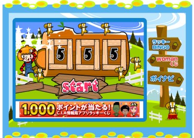 今日はInfoseekラッキーくじがあたりました。━━━━━━━━━━━━━━━━━━━━━━━━━━━━━━━━━━========================================★★★ Infoseek ラッキーくじ ★★★========================================----------------------------------------------------------------☆☆☆\ おめでとうございます /☆☆☆~ 1ポイントご当選のお知らせ ~━━━━━━━━━━━━━━━━━━━━━━━━━━━━━━━━━━一週間溜めまくった更新分をまとめてやっていて、そういえば今日の分、まだじゃない?と慌ててやったところ…。最後の最後で、あたり。「999」で当たりでした。Infoseek三連荘ですね。ごっつぁんです!毎日こつこつポイントゲット~♪