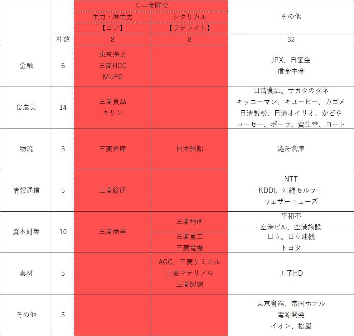 三菱グループ全24社中16社⇒ミニ金曜会。