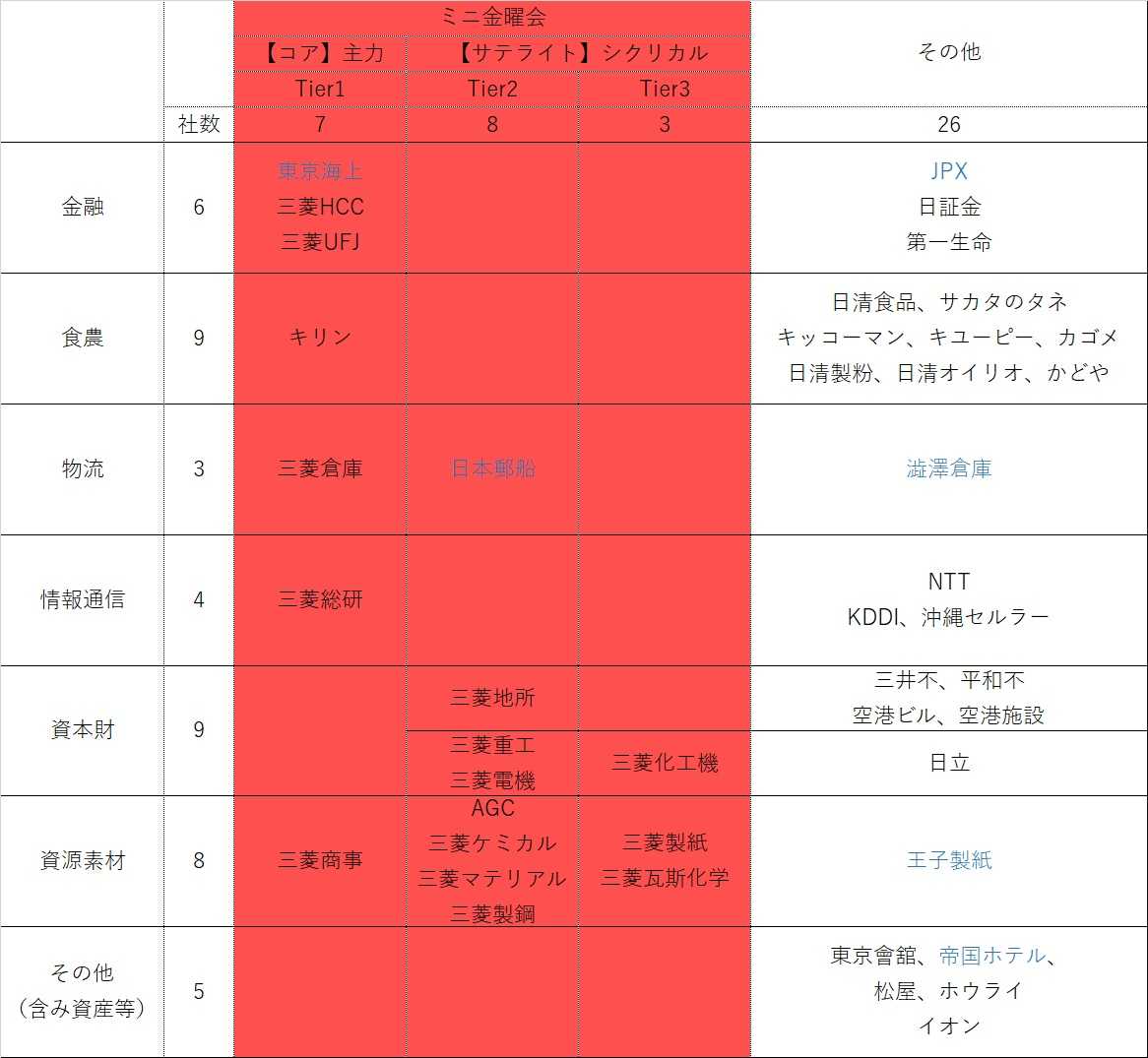 【ミニ金曜会(三菱グループ厳選)18社+