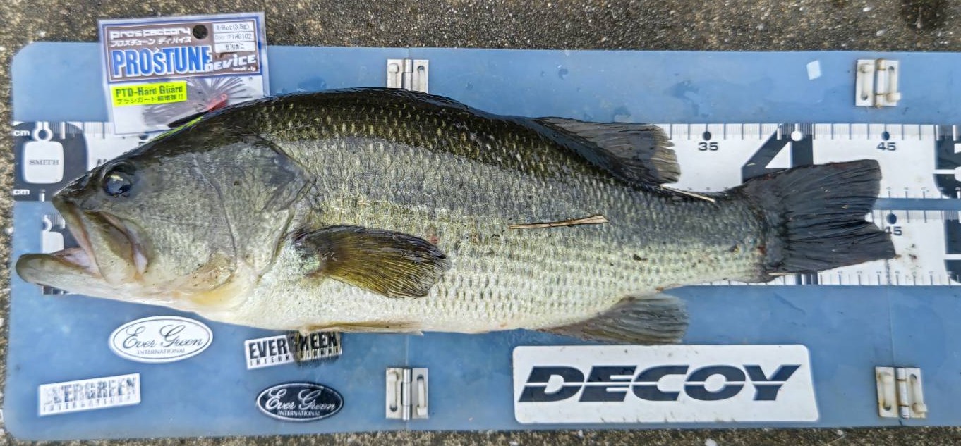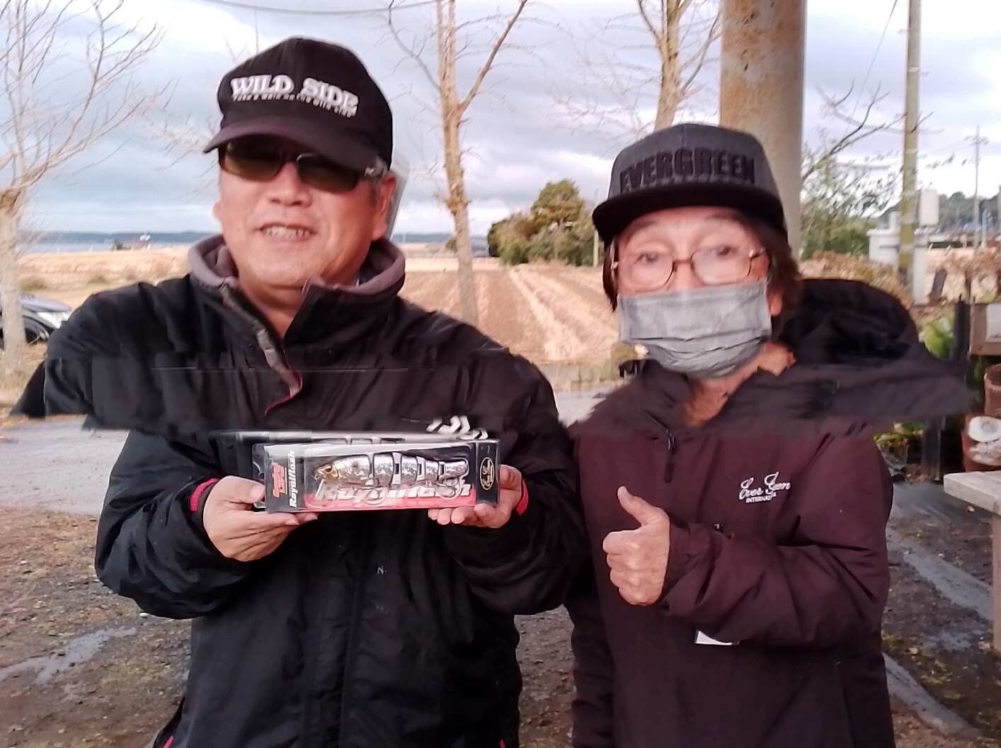 毎回スタートから午前10時までに、一番早く釣った方に贈る、本日の早掛け賞は、前回に引き続き内田さんが獲得されました!釣った時間は、こちらに画像が届いた時間にしていますので、今日はAM9:48分でした!高橋さんも釣られましたが、残念ながら10:04分でした!今回からバスをメジャーに乗せて画像を撮る時に入れる必須アイテムはエバーグリーンさんからご協賛頂けることになりました。今までご協賛頂いたプロズファクトリー様、永い間ご協賛頂きまして、本当にありがとうございました!