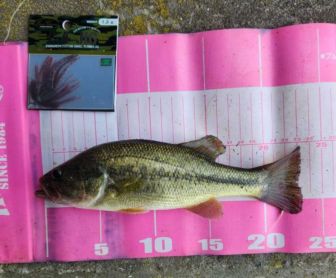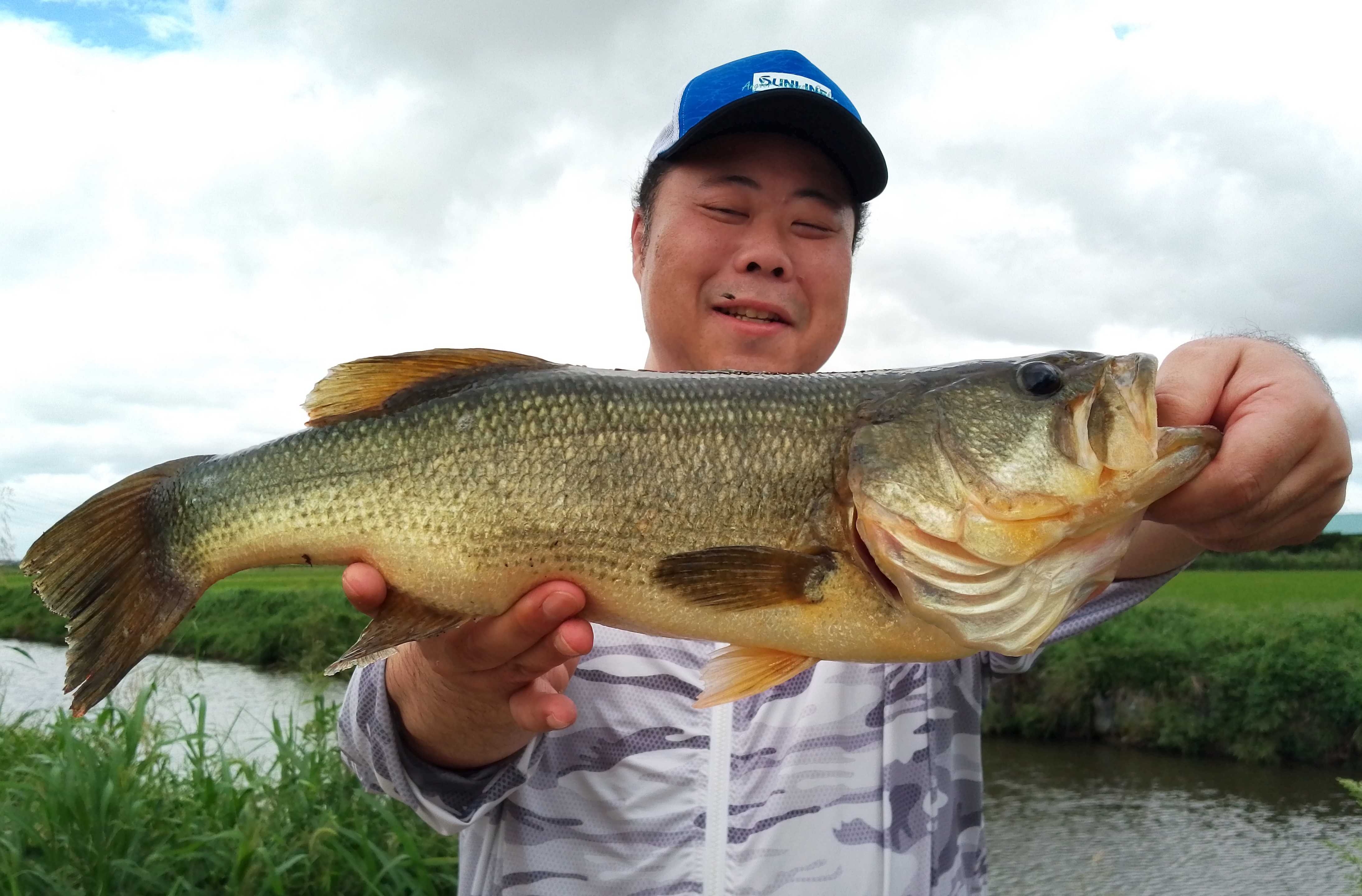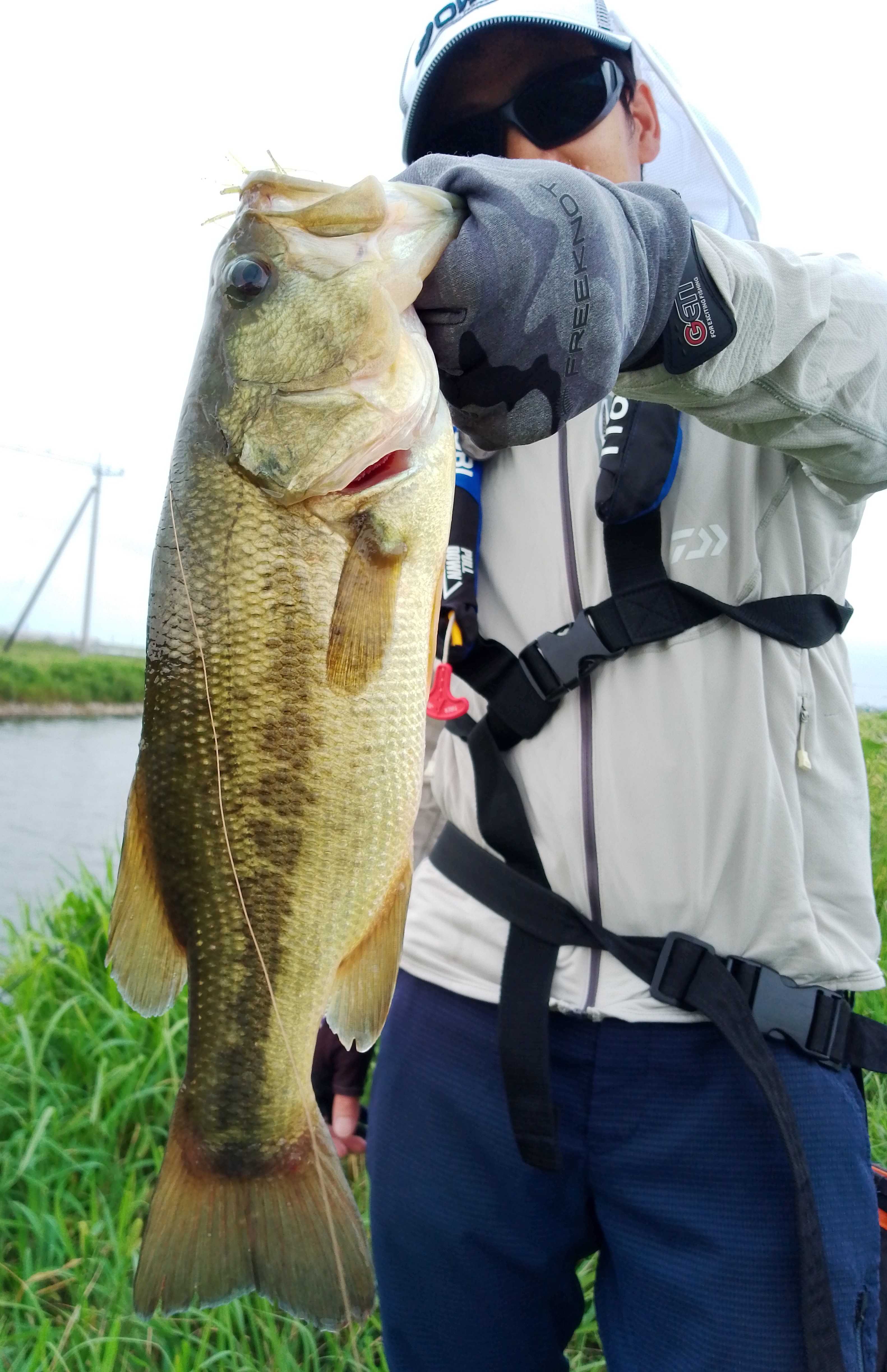昨日は久しぶりにKさんと家内と私の3人で現在試作中のスモラバのテストに行きました(^-^)一番の問題はガードの強さとフック形状。フックガードのブラシの強度が、草やストラクチャー、ボトム等に安易にスタックしないか・・。バスが咥えた時にガードが邪魔せずにフックポイントが出て、確実にフッキング出来るか。フックの形状や強度が、バスがジャンプしたりファイト中にバレることなく、安心してバスを足元に寄せられることが可能か・・。刺さりにくく、刺さりやすいという相反する矛盾した条件をクリアー出来るかを試しに近所の川にテストに行きました。浮草や対岸のブッシュ、杭、オダに意識的に絡めてもクリアー。スタックしやすいボトムのハンプにしつこく通しても無事クリアー。ブラシガードの強さは問題ないようです(^^)あとは、この水路には無い一番厄介な通称「玉ねぎ」だけですね。そして一番の課題はバスの上顎に確実にフッキング出来るかどうか。アイの位置やシンカーの形状で、スイミングやボトムバンプ中に常にフックポイントが上を向くかどうか。そして、咥えた時にブラシガードがバスの口に押されてフックポイントがすんなり飛び出してくれるか。昔、根掛かりしないようにガードの太さと本数を強化したら、根掛かりは全くしないが、バスがバイトしてもすっぽ抜け(笑)ガードが強すぎてフックポイントが出なかったのです。あとはバスのバイト待ち・・これが一番難しい(^^)ところがラッキーなことに、Kさんがボトム形状を探っている時に見事にバイト!!ジャンプや何度も方向転換を繰り返すもバレず!上顎にしっかりとフッキングしていました。今回、フック形状を試す為に、あえてバーブレスにしてましたが、安定してファイト出来ていたので、問題無さそうです!あとはウエイトのバリエーションとラバーのカラーですね。今回使用したウエイトは4g。オンス表示ではなく、グラム表示で2g、3g、4g、5gのラインナップが良いのではと思っています。初のテストで見事40アップをゲット!!きれいに上顎の中心にフッキングしていました!テスト中に近くで釣っていた家内も、自分のお気に入りのリグでゲットしてました!