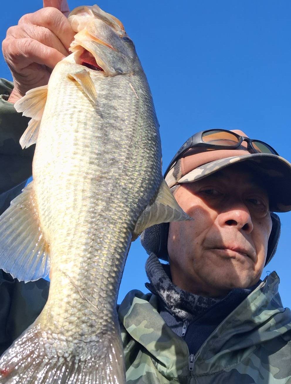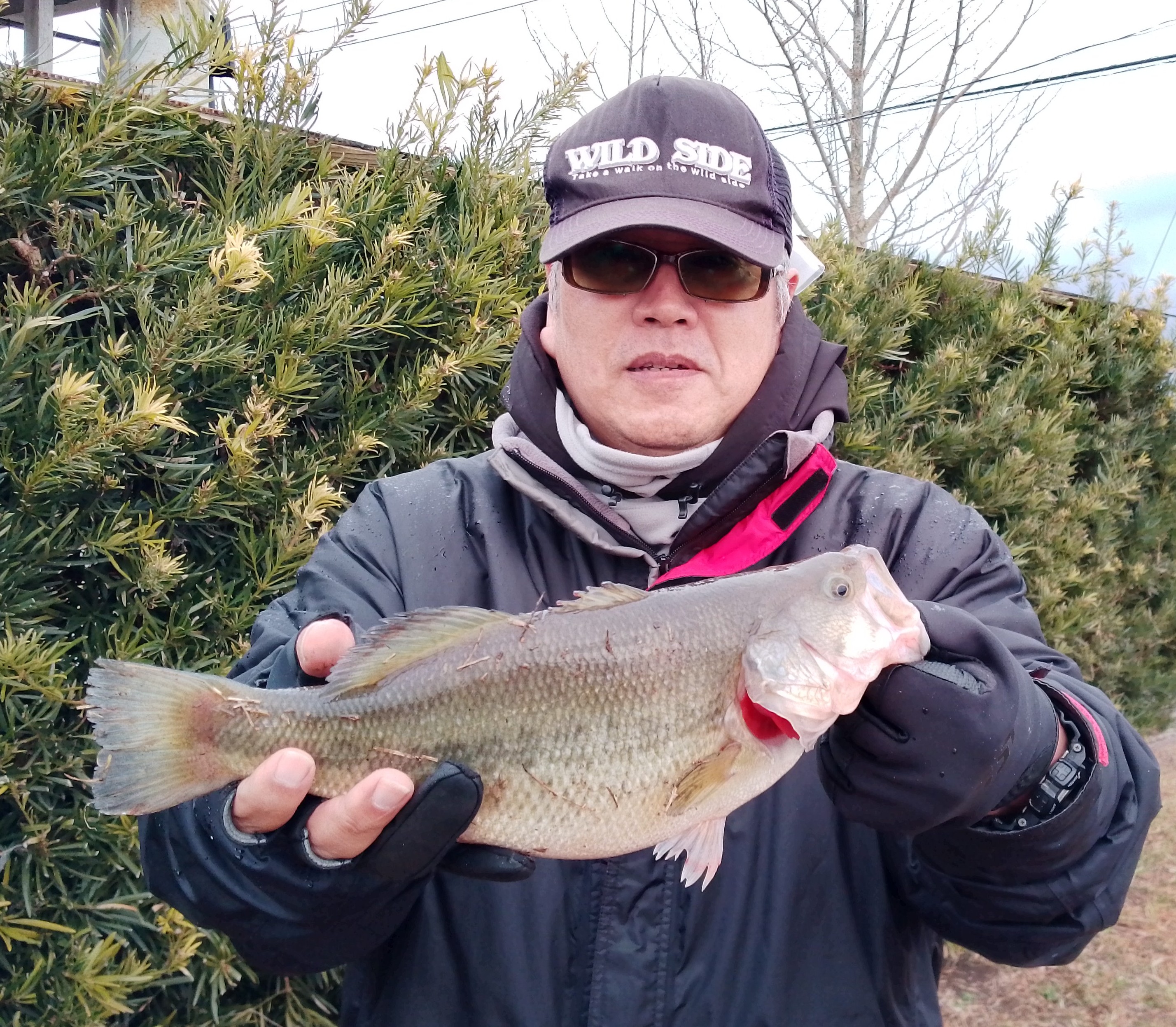 サイズ編集した画像がちょと変だったので画像を替えて再投稿します。ー-----------------------------------昨日のLBS新春耐寒初バス釣り大会の模様です。天候が悪く参加者全員の画像が撮れていないので、ご勘弁下さい。今回唯一40アップをゲット!!水温が低く、曇り空だったので活性は今イチ。それでもヒットするバスはどれも良いコンデションでした。